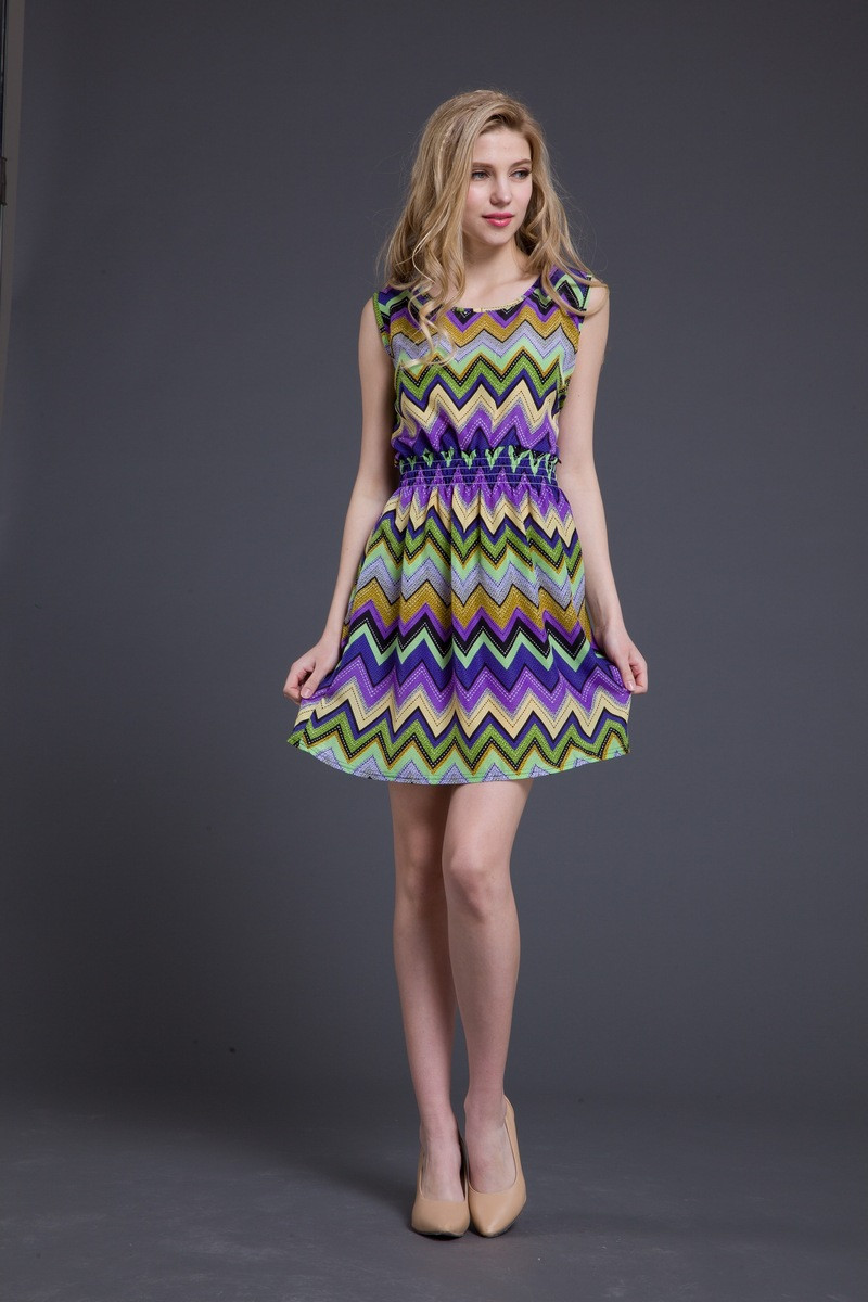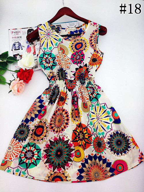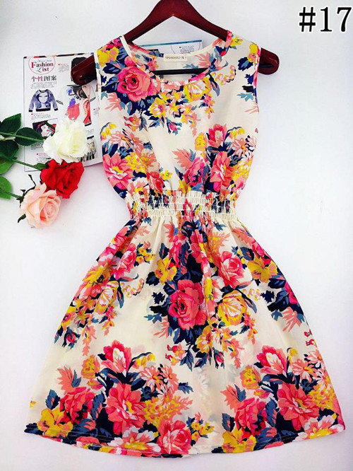 2016 neue Reizvolle Frauen-sommer-beilufige Kleider Sleeveless Weinlese-blumenmuster Chiffon-kleid Strand Kleid Fr Frauen