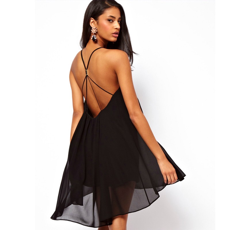 2016 frauen Kleid Fashion Cute Sexy Frauen Sommer Beiläufiges Chiffon-Sleeveless Spaghetti Aushöhlen Kleid HFF703