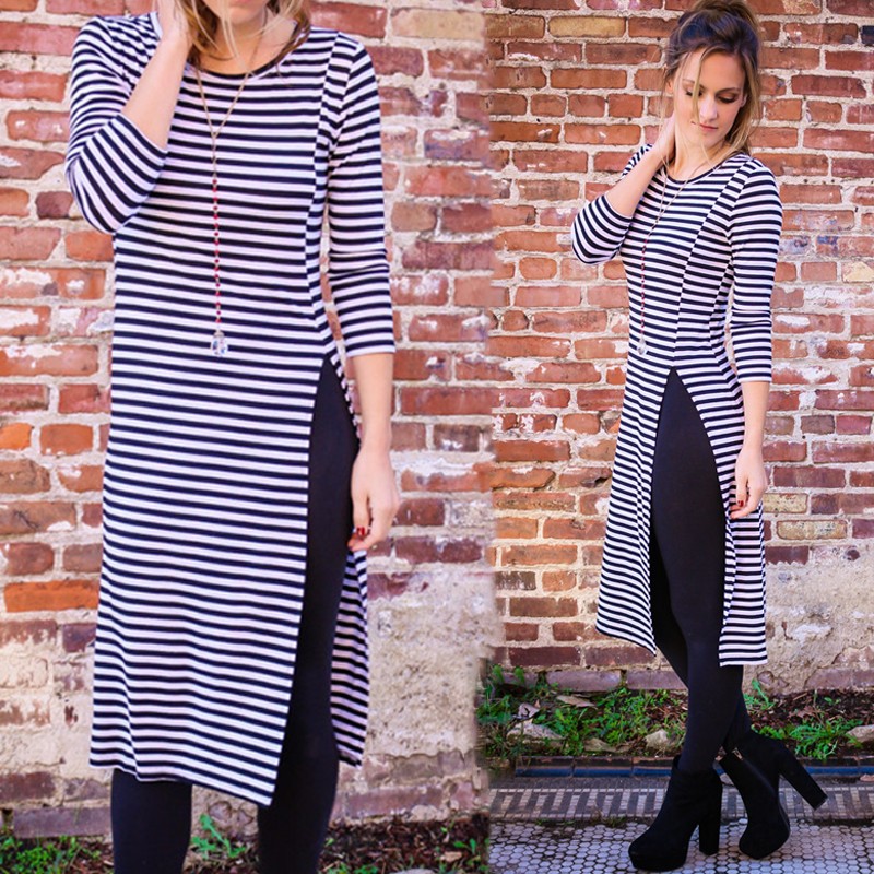 2016 New Striped Split Maxi Kleider Frhling Sommer Sexy Frauen Bleistift Kleid Vestidos de festa Langarm Freizeitkleidung 6007_201
