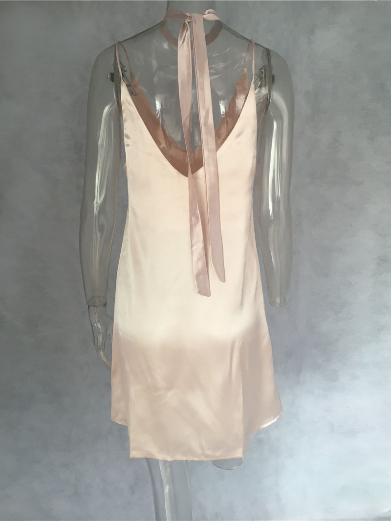elegante Sexy Kleid Mit V-ausschnitt Halfter Satin minikleid 2016 dame zurück V frauen saitn minikleid