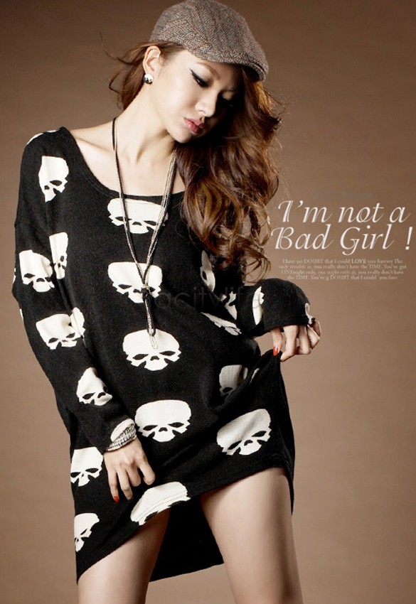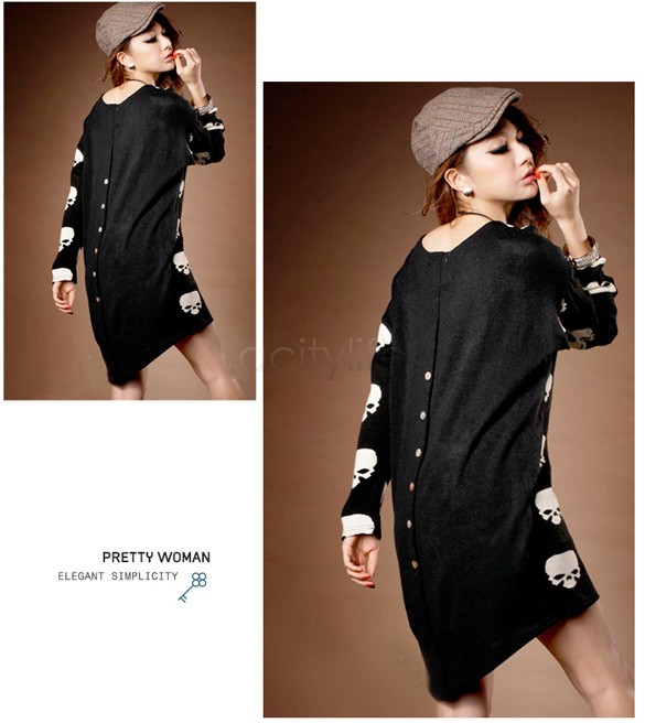 Frauen casual pullover schdel muster sexy langarm pullover kleid 2015 neue winter plus gre freies verschiffen 51