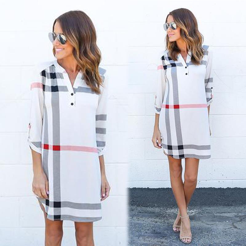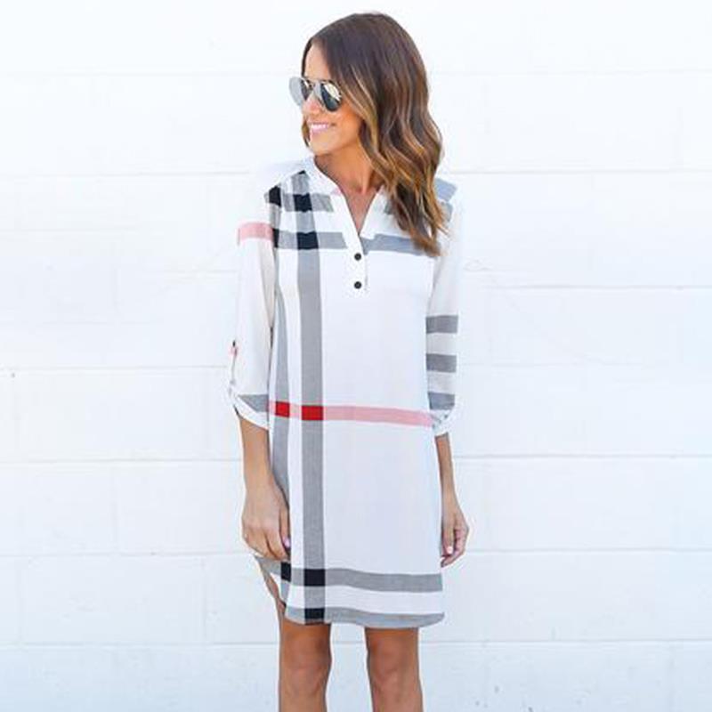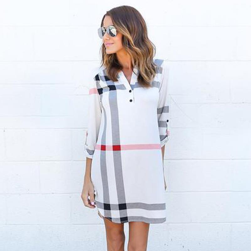 Frauen Kleid Kausal Plaid Gedruckt 32749115325