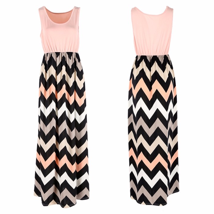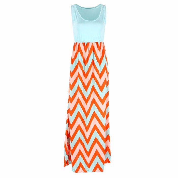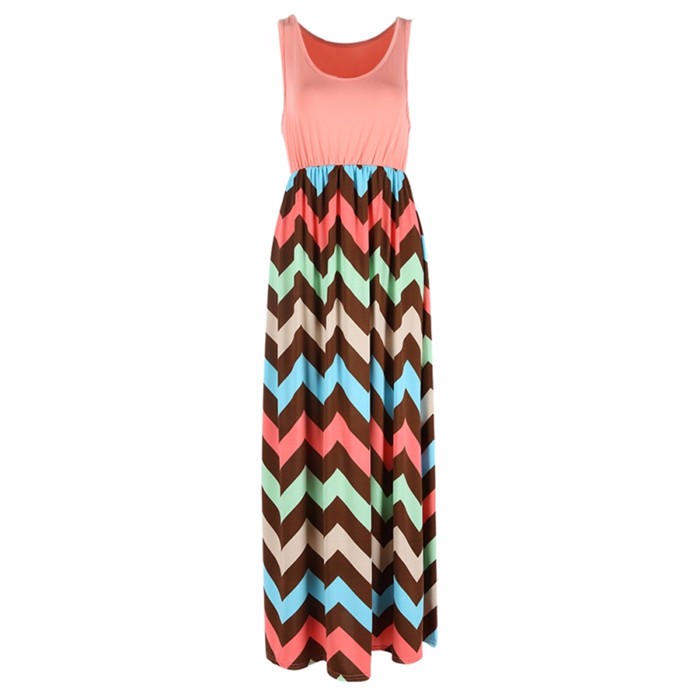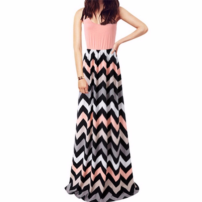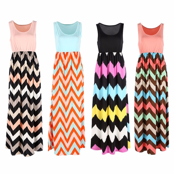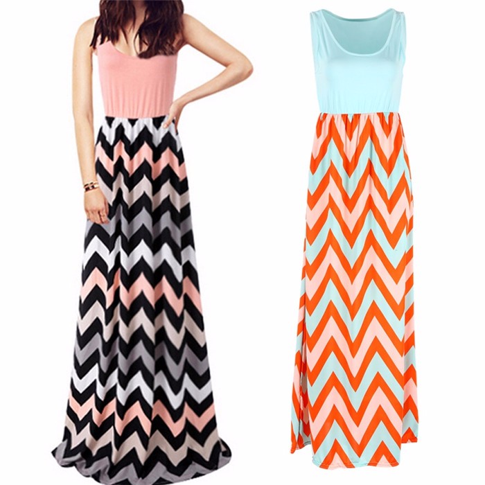 Frauen Kleider Sommer Sexy Welle Streifen Bhmisches Langes Kleid Strand Boho Sleeveless Maxi Vestidos Feminine