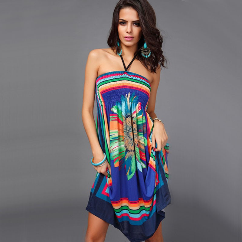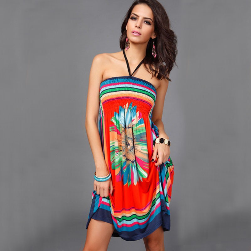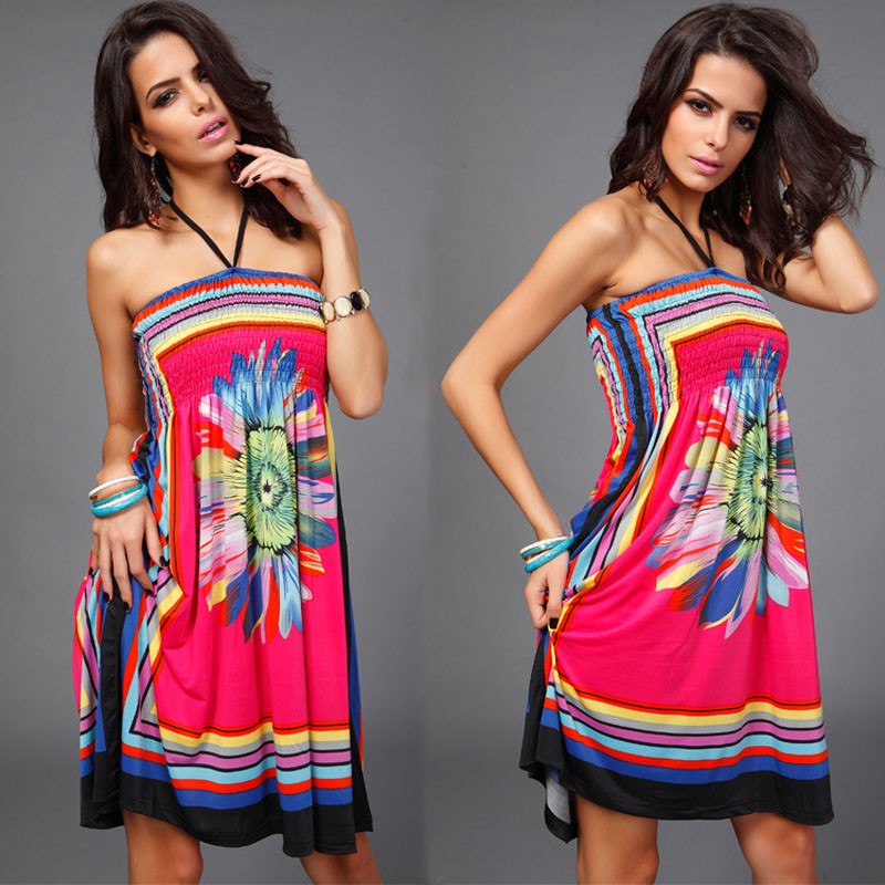 frauen Kleider Vestidos de festa 2016 Trägerloses Vintage Sexy Spaghettibügel Floral Sommerkleid Knielangen CS001