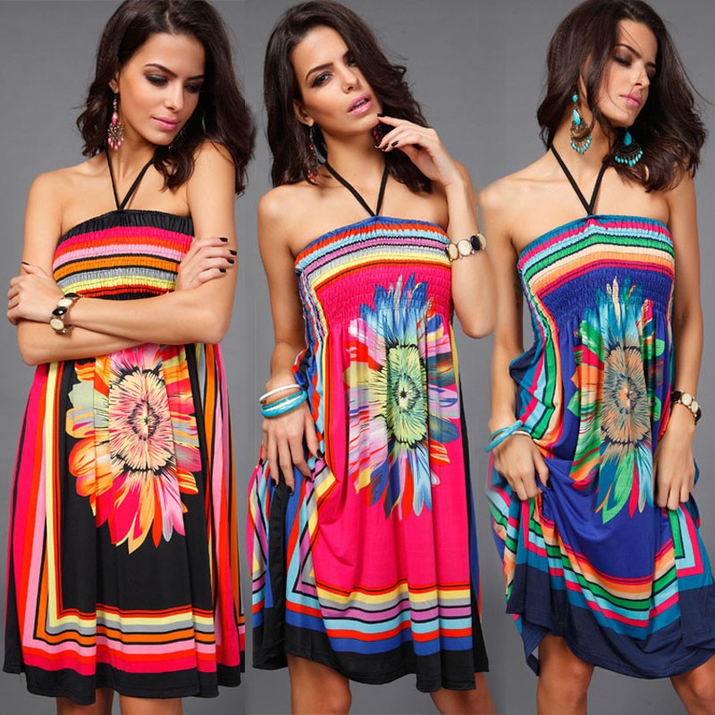 Frauen Kleider Vestidos de festa 2016 Trgerloses Vintage Sexy weg von der Schulter Floral Sommerkleid Knielangen CS001