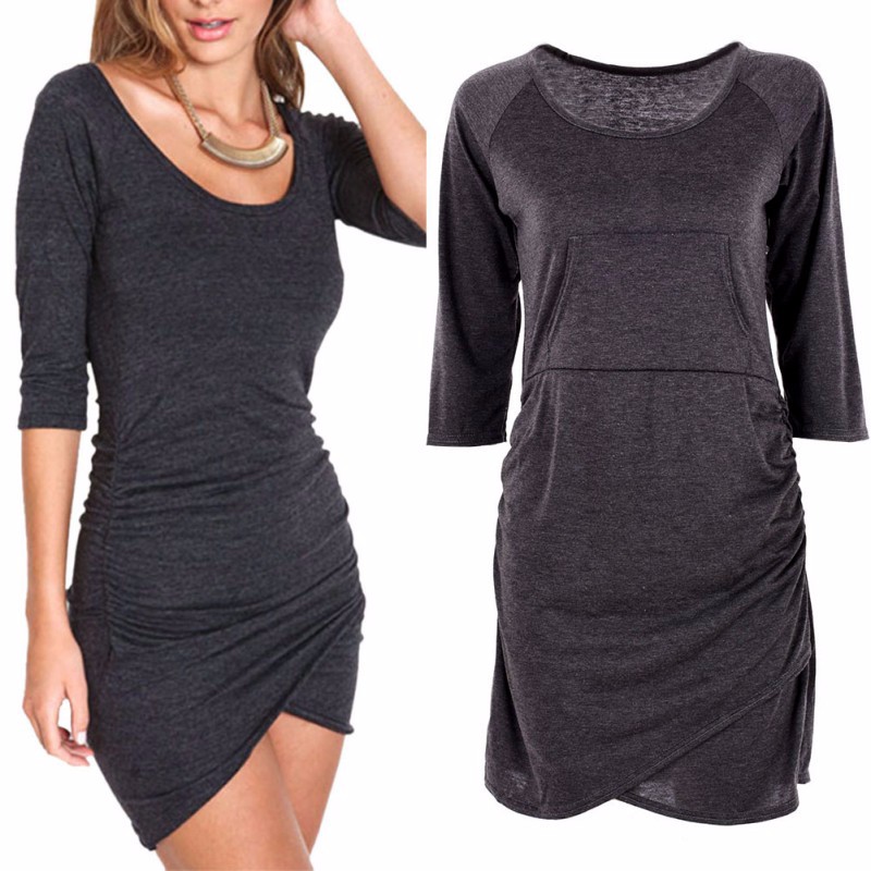 frauen Sexy Kleid Mode Baumwolle Dünne Lange Hülsen-kleider Frauen Kleidung S-XL