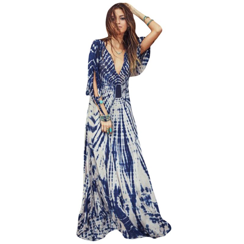 Frhling Herbst Frauen Kleid Lose Sexy Tiefem V-ausschnitt Lange Maxi Kleid Sexy Split Chiffon Vestidos PX