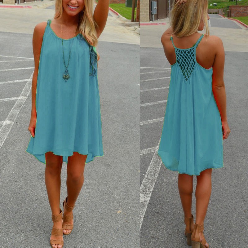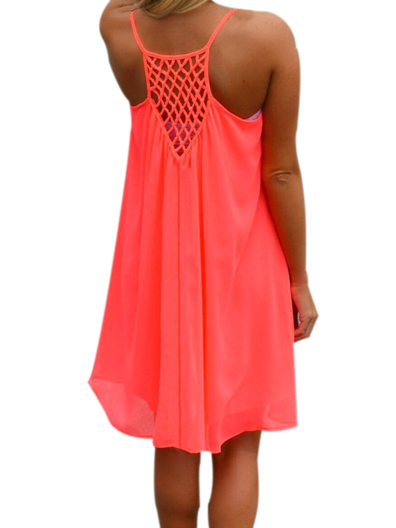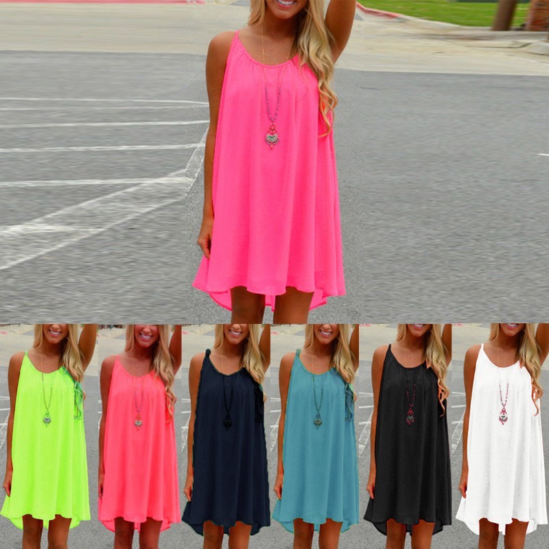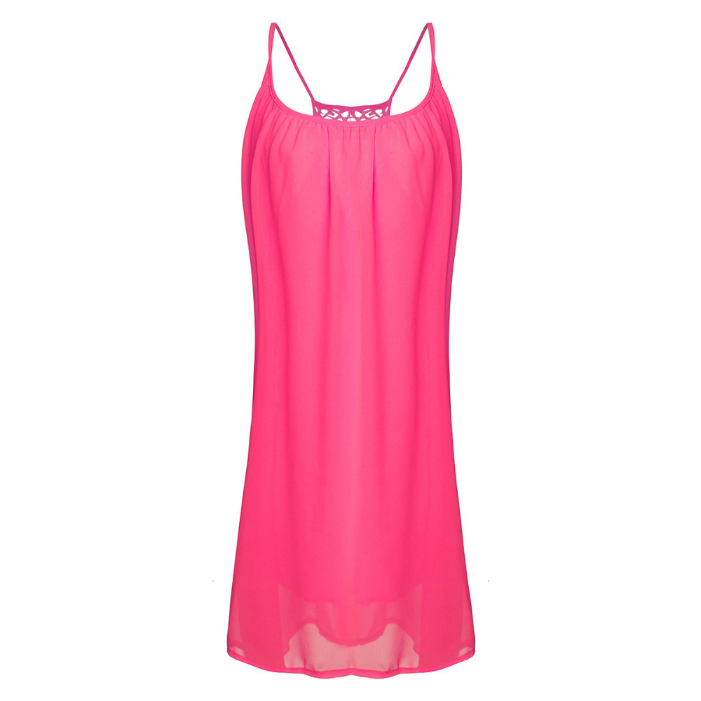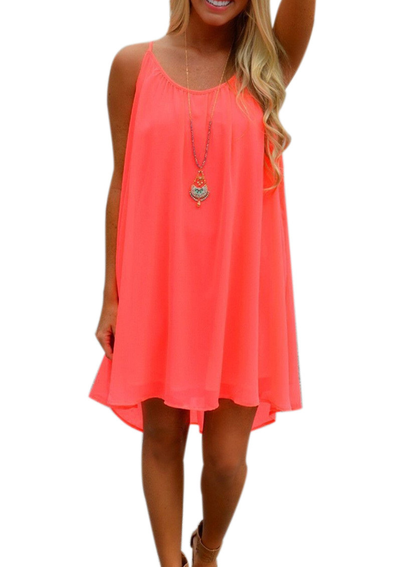 Heier 2016 Sommer Fluoreszenz Kleid Frauen Straps Chiffon Sexy Party-minikleid Beilufiges Lose Feste Kurze Strand Kleid Vestidos