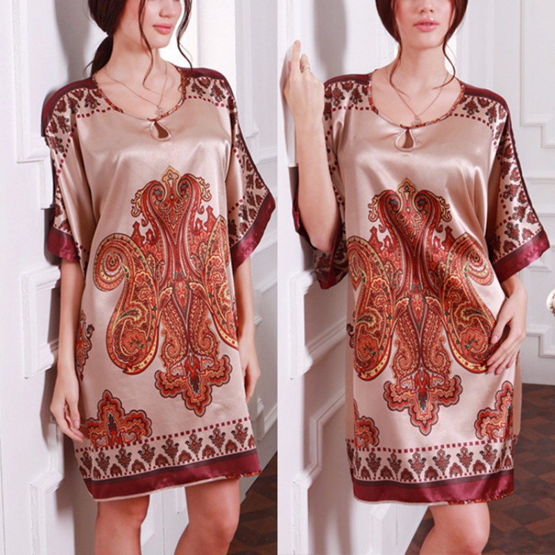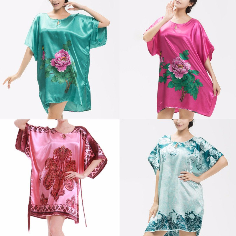 Heier Sommer Sexy Robes Kimono Frauen Badekleid Nachthemd Weiche Seide Nachtwsche Kleid