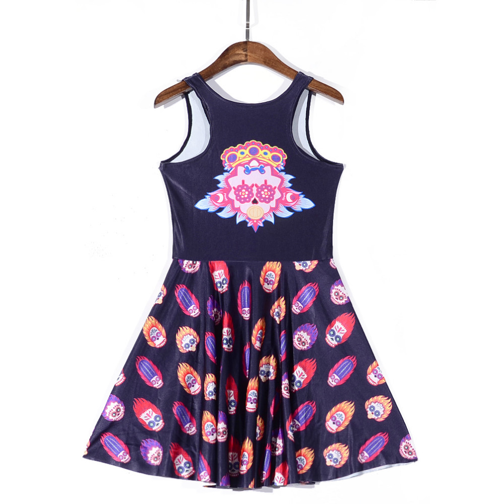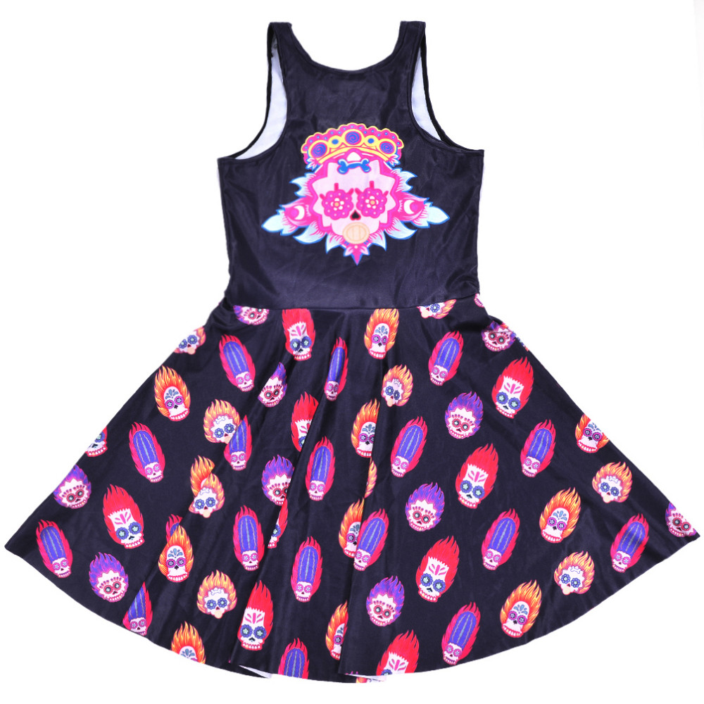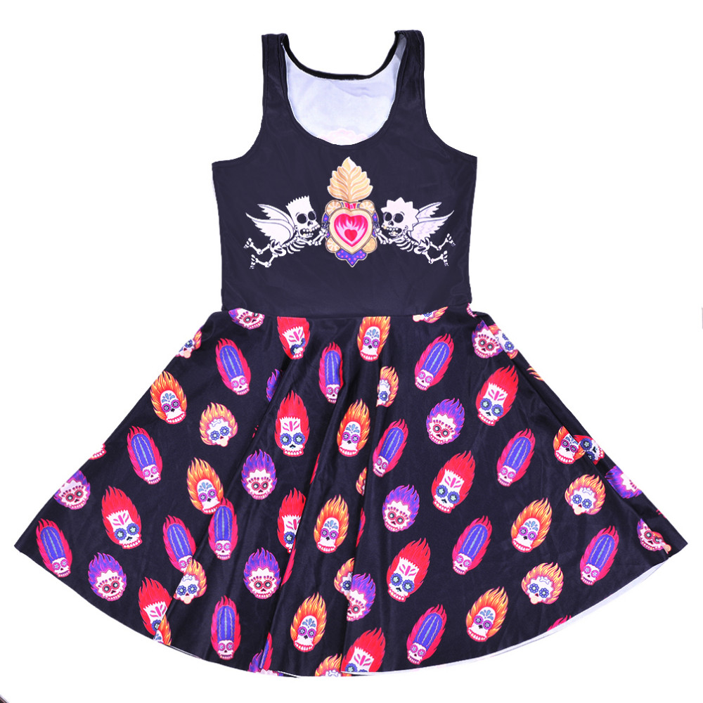 Mode Frauen Kleid Engel Feuer Schdel Halloween-maske Digital Gedruckte Schwarze Kleid Frauen Sommer Sexy Sleeveless Dnnes Kleid