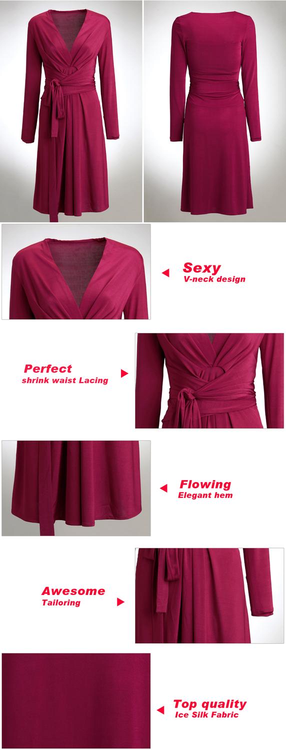 Artikel Details:Artikel name:Billige frauen kleider neue mode 2014 langarm v- Hals falten schnürung Knie- Länge Skater-Kleid Farbe:rote rose Stoff:Eis seide Verfügbare Größen:S; m; l; xl; xxl; xxxl Größentabelle:
