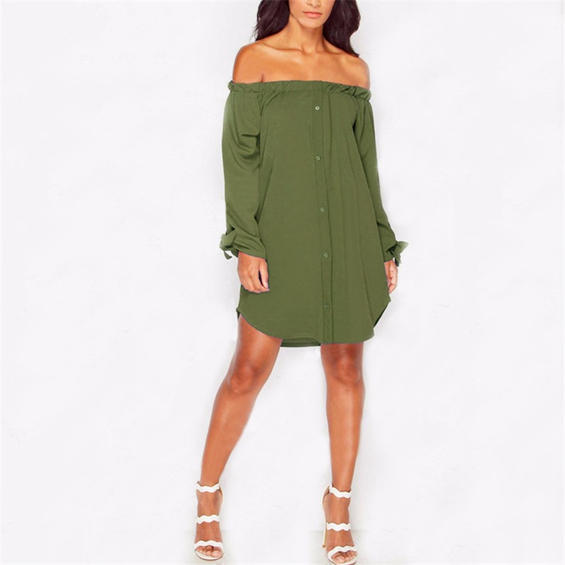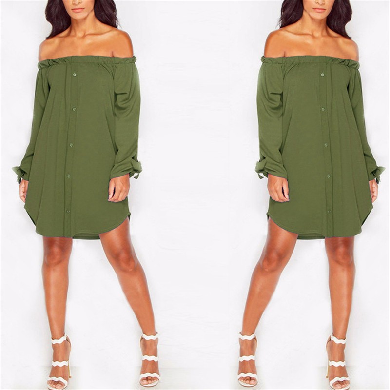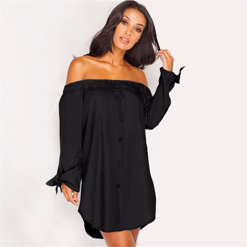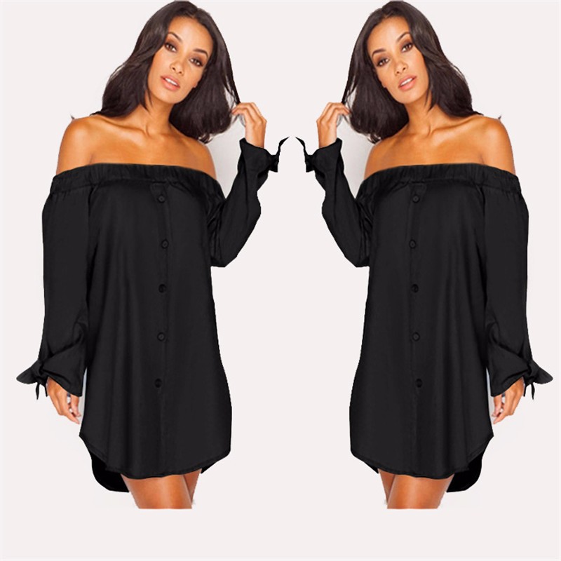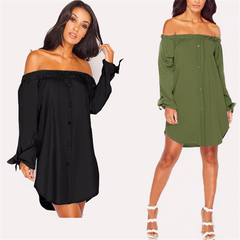 Neue 2016 Herbst Trendy Strapless Sexy Schulterfrei Slash Neck Shirt Kleid Mode Fliege langrmeligen Casual Lose kleid