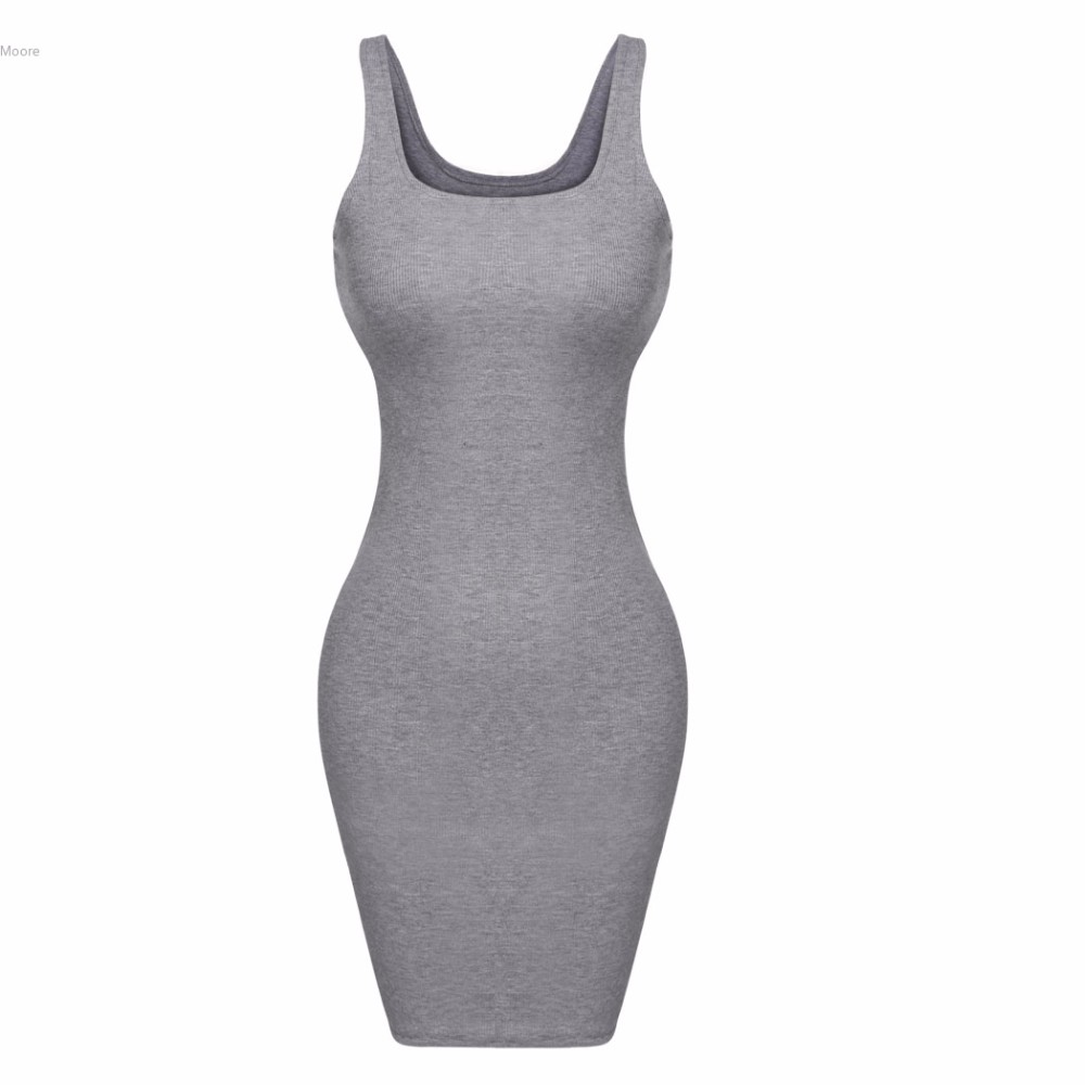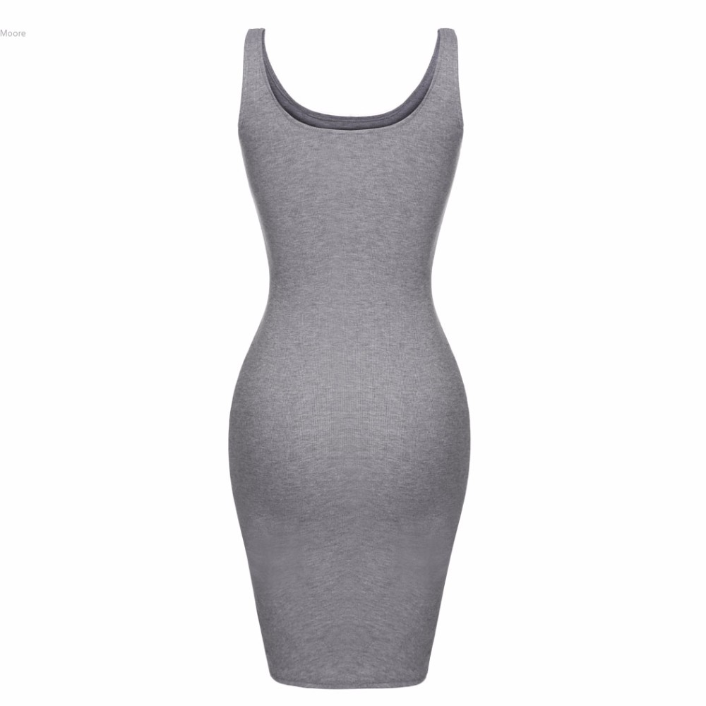 Sexy Frauen O-ansatz Feste Slim Fit Bodycon Tank Kleid