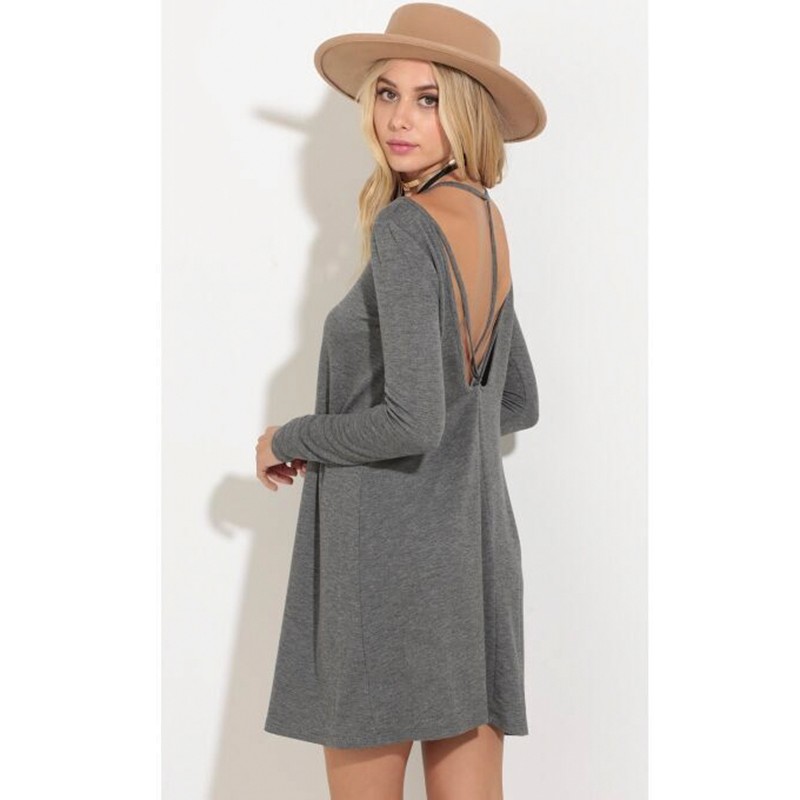 neue frauen Herbst Kleid Beiläufige Baumwolle T-Shirt Lose Dame Kleidung Langarm aushöhlen Stricken frauen Kleider HFF718