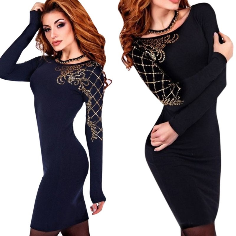 Sexy Langarm-schlank Bodycon Frauen Bleistift Kleid S-XL