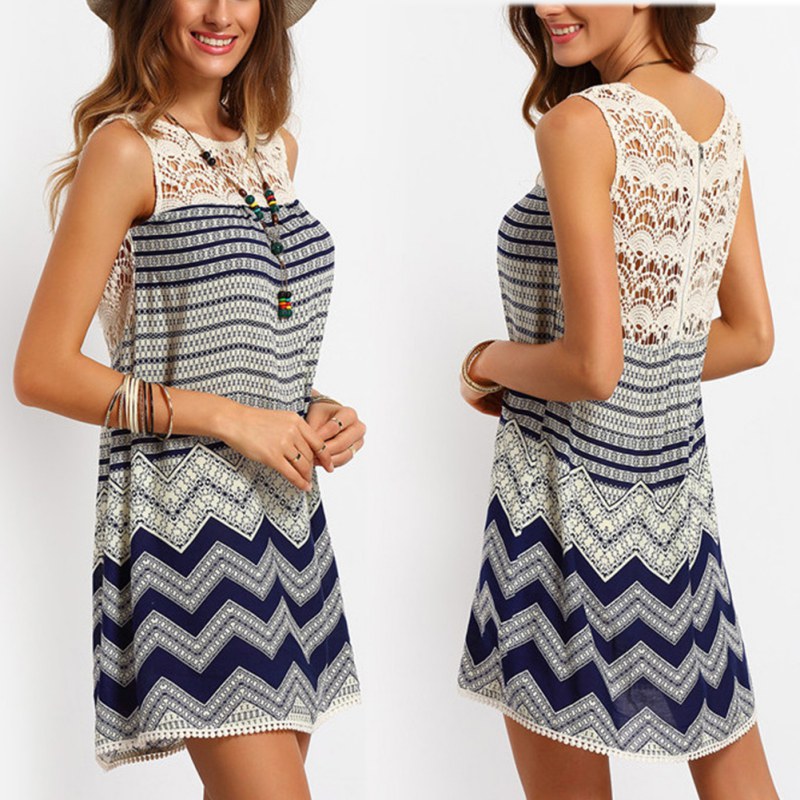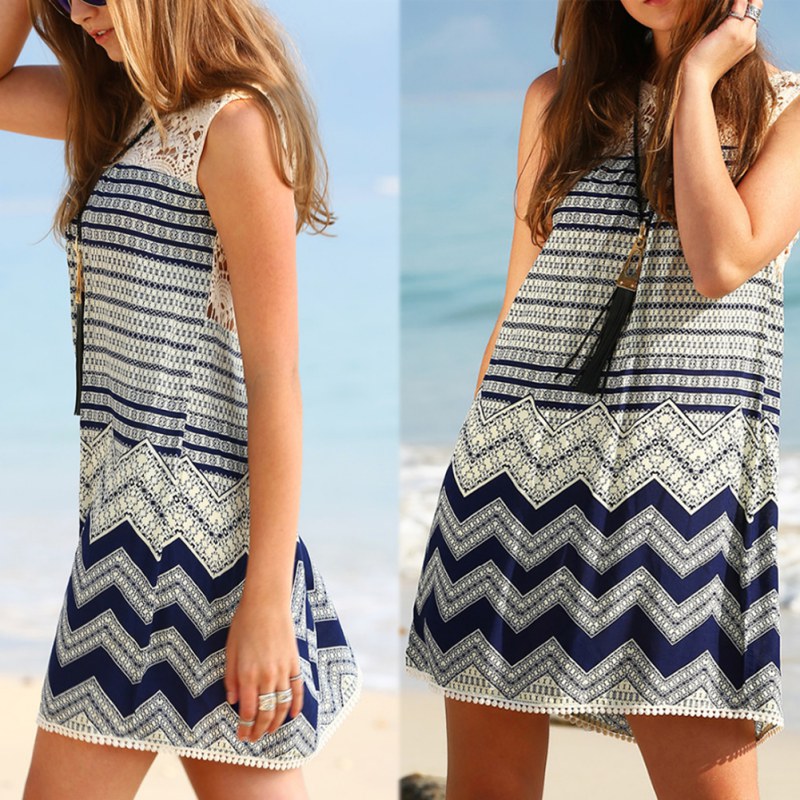 Sexy Strand Kleider Frauen Welle Striped Multicolor Sleeveless Oansatz Lose Tank Rayon Kleid
