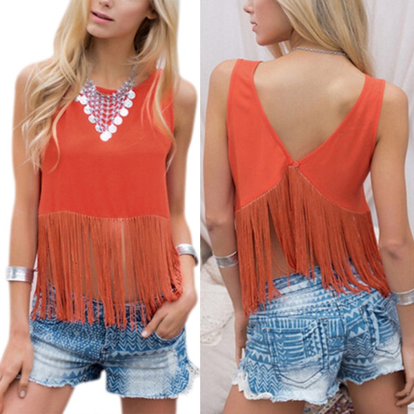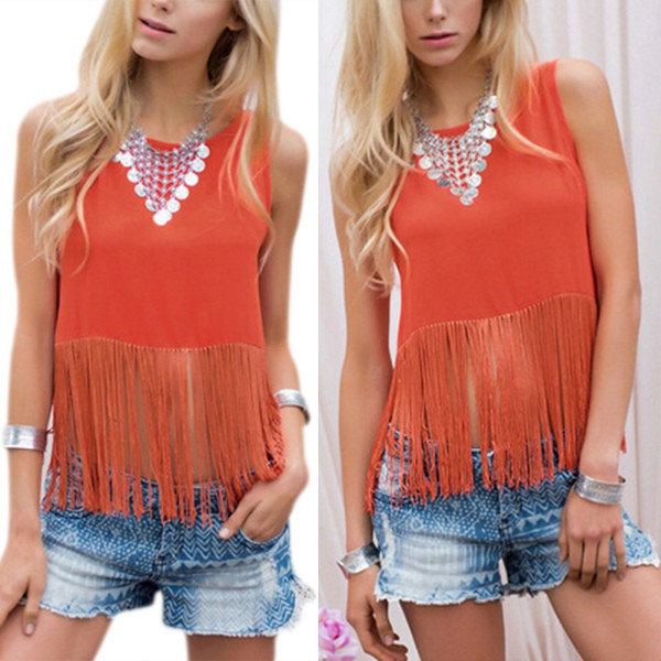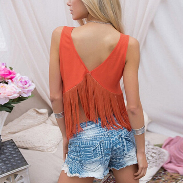 2015 2015 sommer Frauen Kleid Frauen Damen Sleeveless Tops Quaste Fringe Rand Crop Cami Sexy Weste T-shirts S-XL