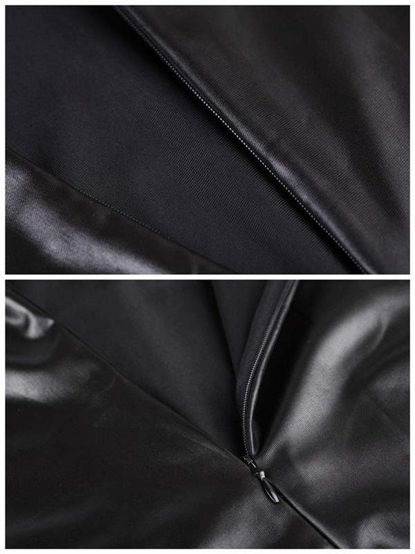 2015 hohe Qualitt Sexy Frauen PU Kunstleder Langarm Club Kleid Crew Neck Midi Parteikleid Schwarz Plus Gre Vestido de festa