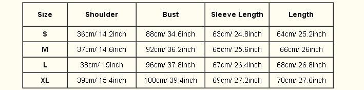 | M | 37 cm/14,6 inch | 92 cm/36,2 inch | 65 cm/25,6 inch | 66 cm/26 inch |