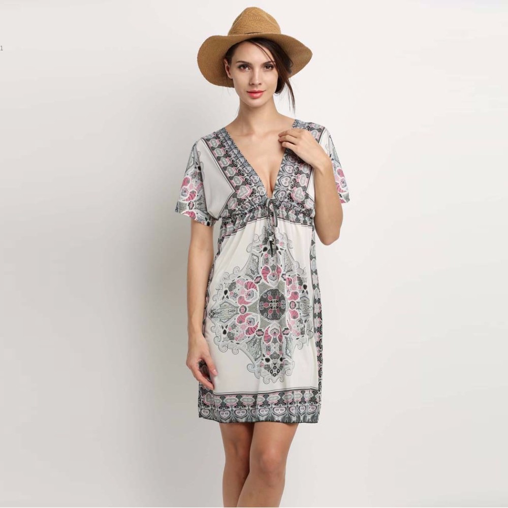 stilvolle Damen Frauen Lose Sexy V-ausschnitt Retro Stil Strandkleid