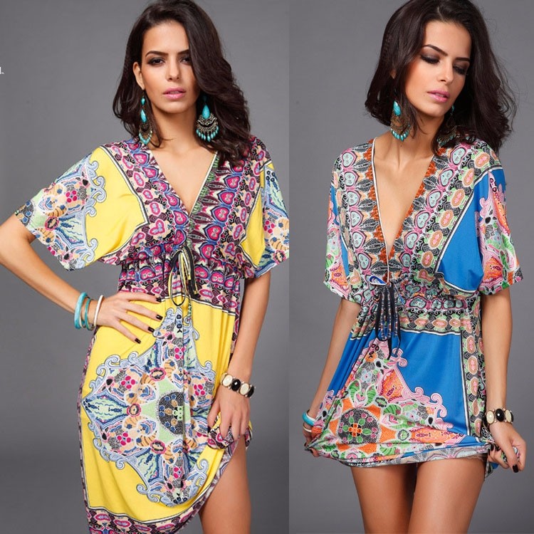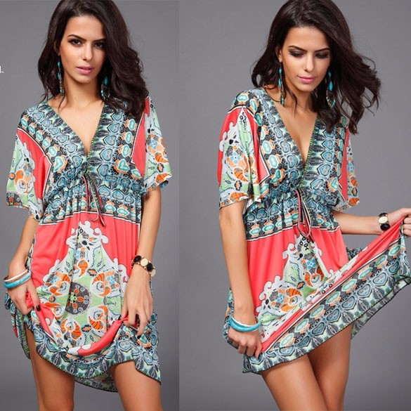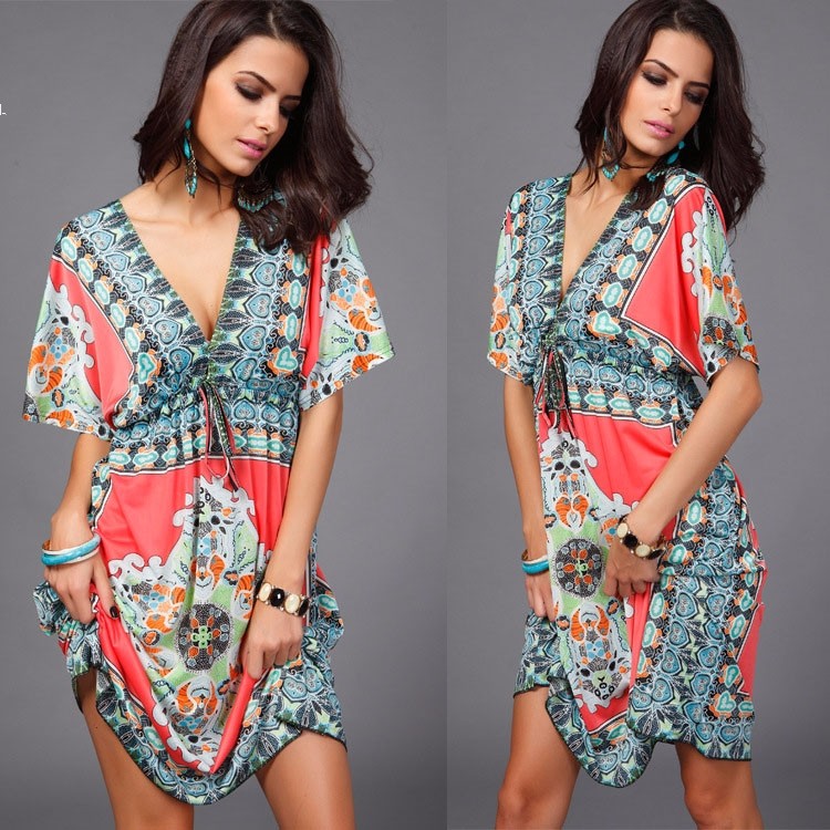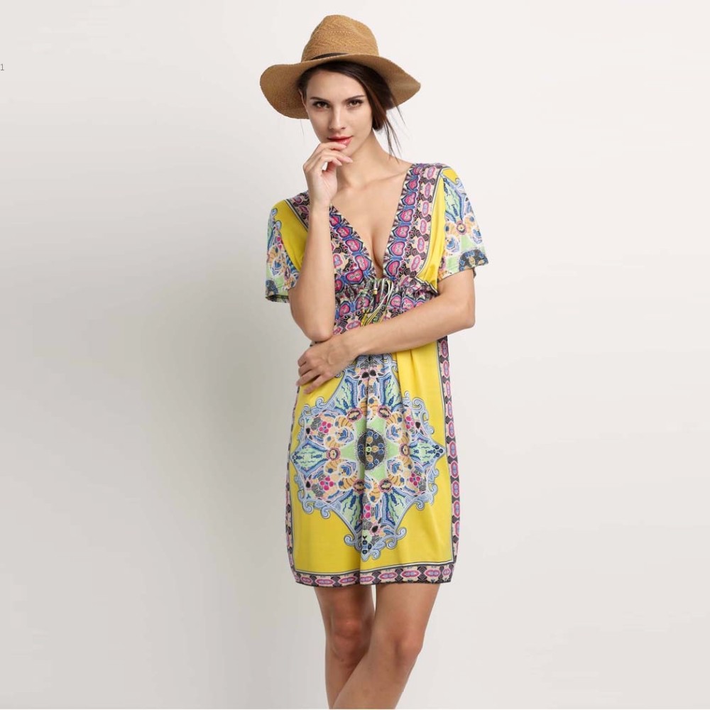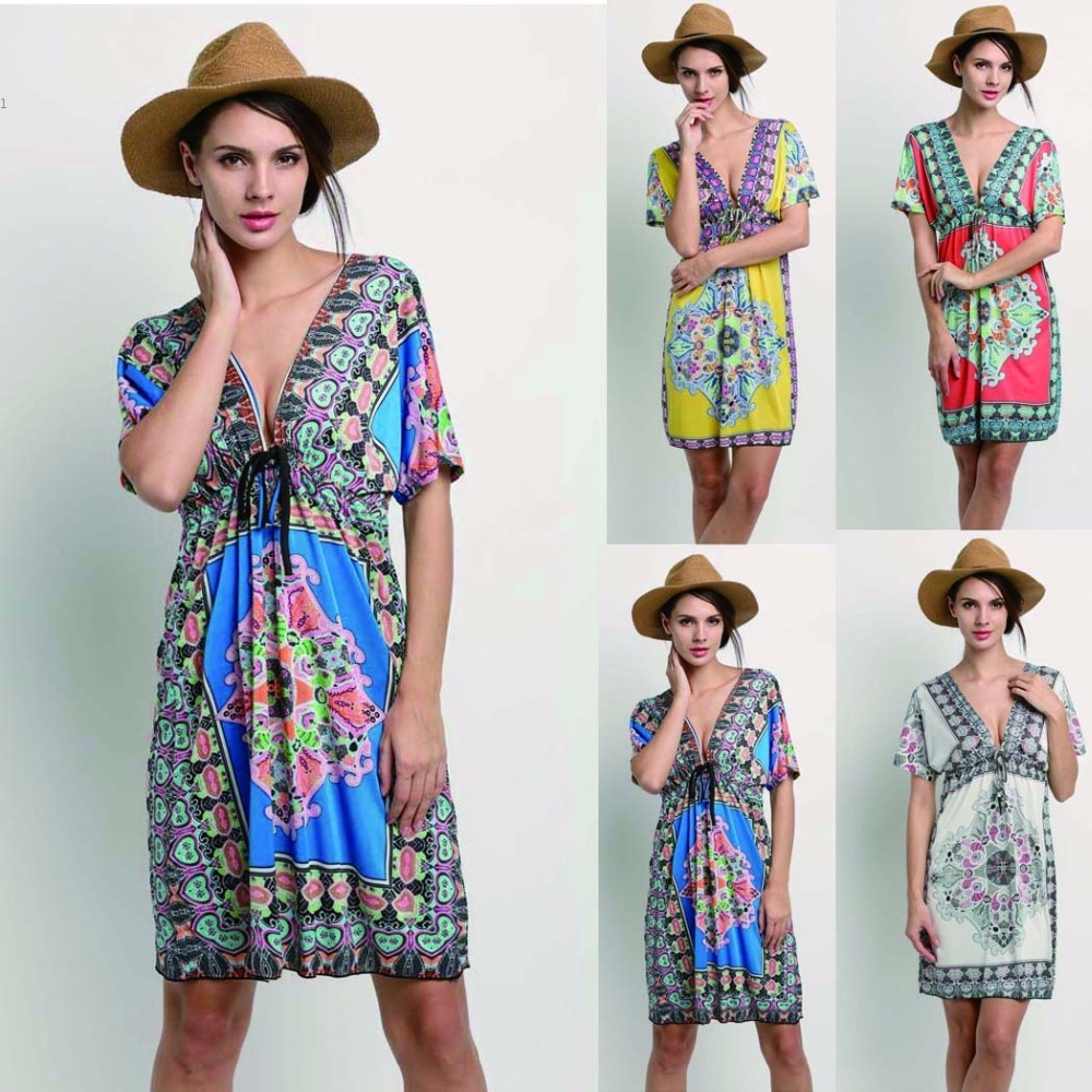 2016 elegante Kleid Lssig Frauen Blumendruck Sexy Mini V-ausschnitt Kleider Sommer Frau Kleidung