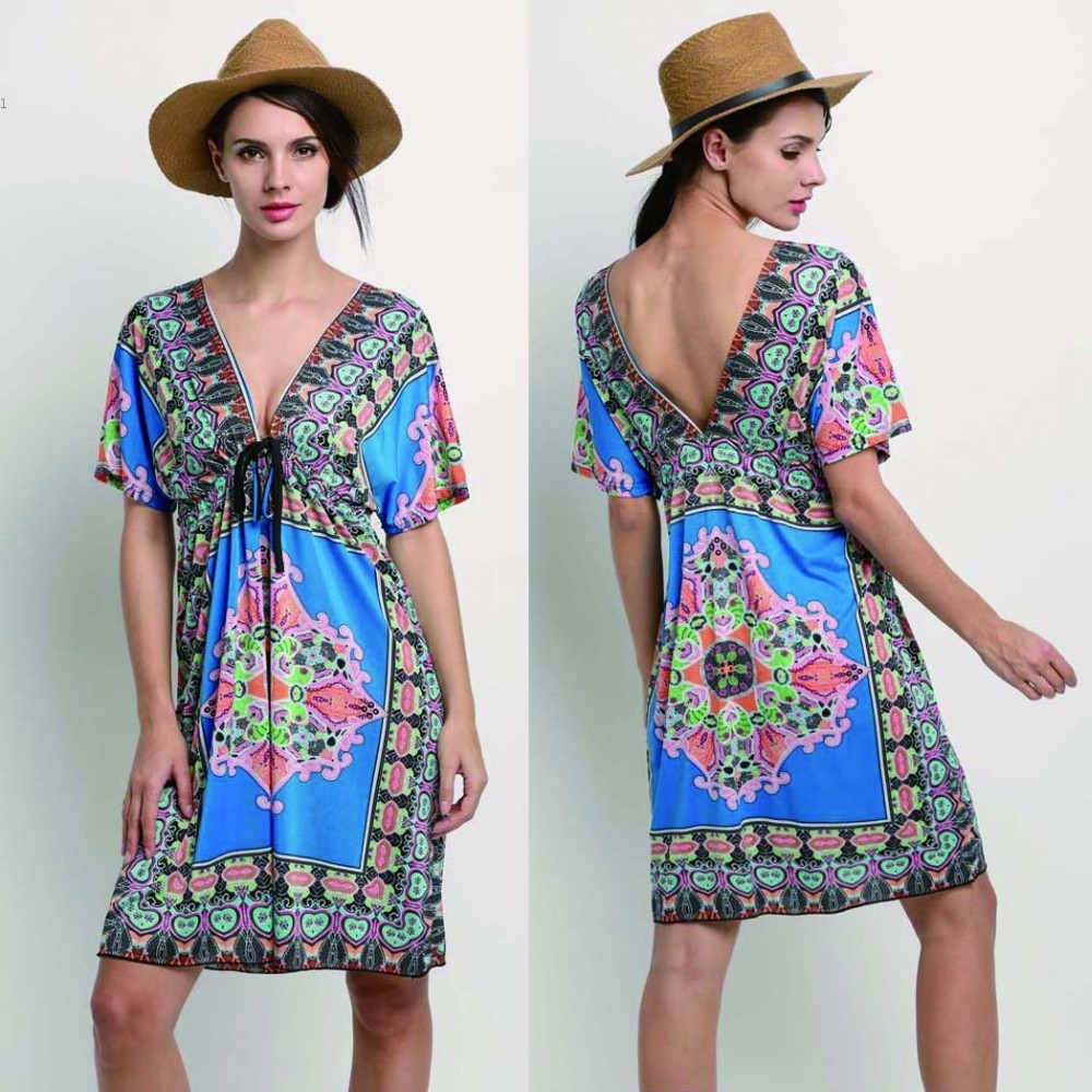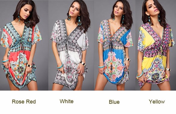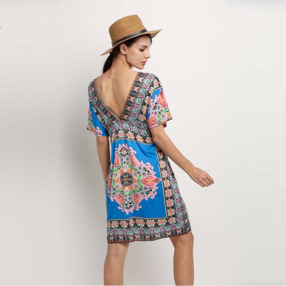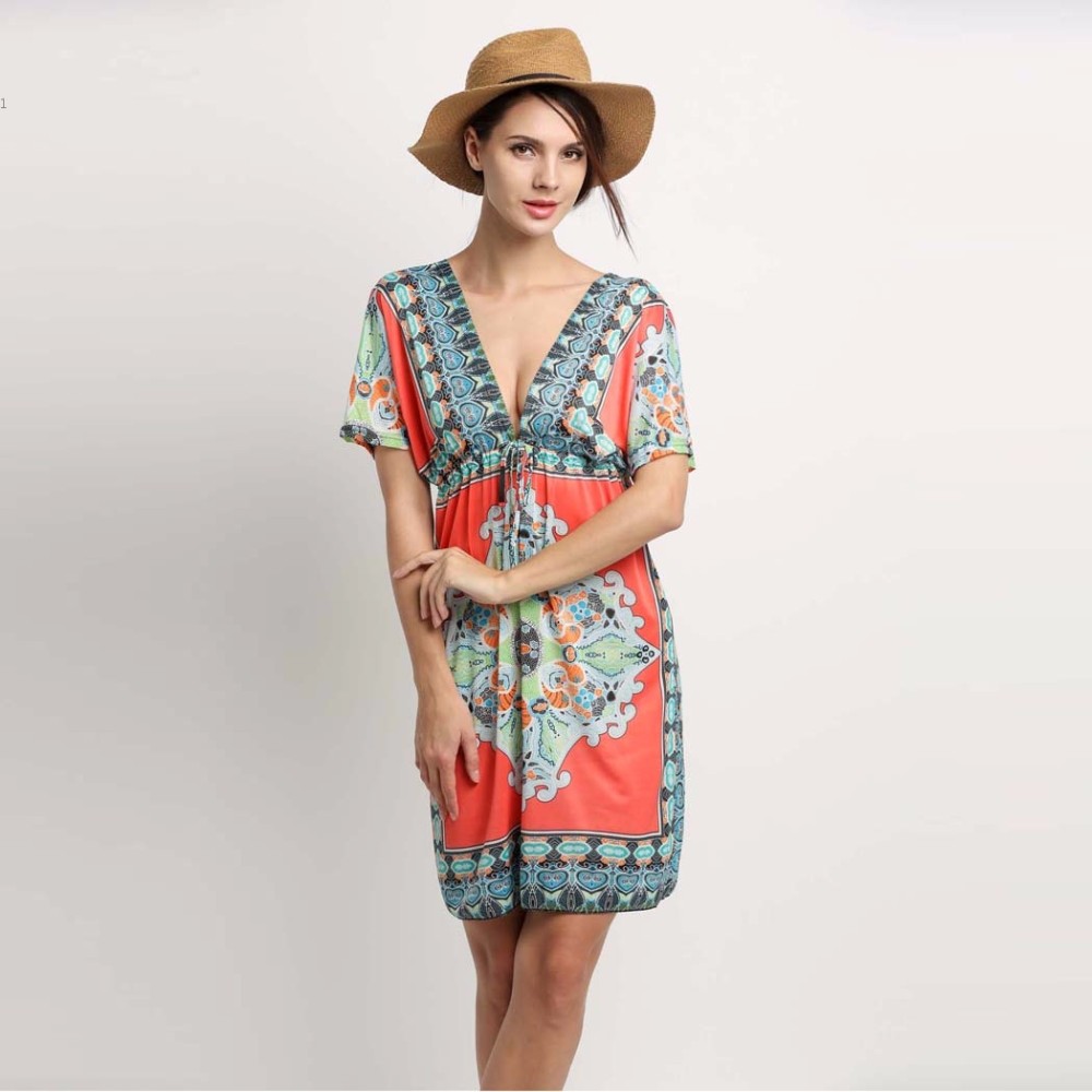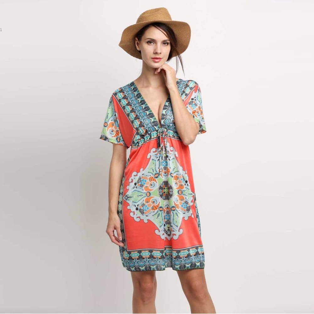 2016 elegante Kleid Lssig Frauen Blumendruck Sexy Mini V-ausschnitt Kleider Sommer Frau Kleidung