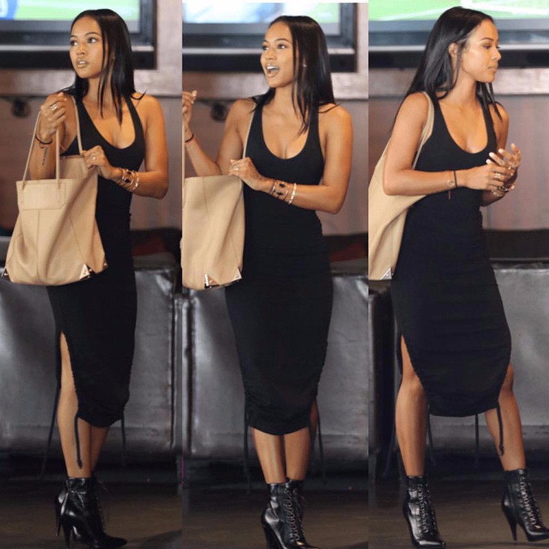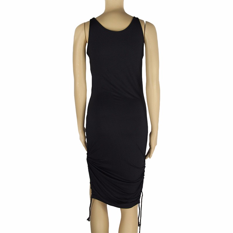 2016 Fashion Sexy Side Split Bodycon Kleid mit Quasten Frauen Solid Black Backless Weste Kleid Hfte Paket Nehmen Clubwear Kleider