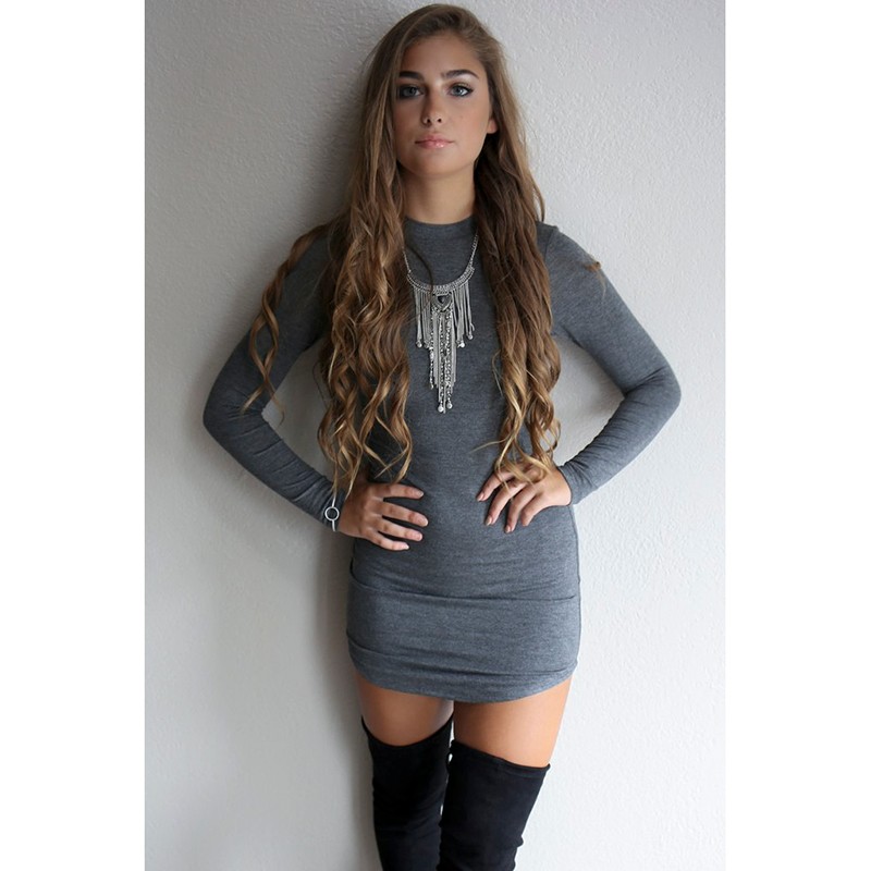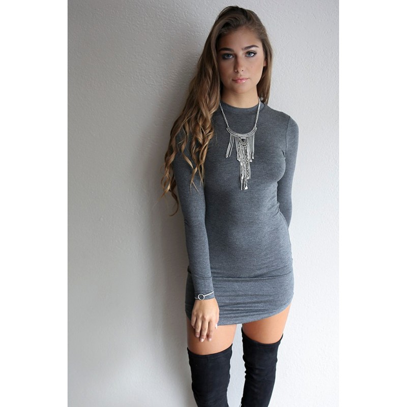 2016 frauen Herbst Winter Feste Sexy Kleid Schlank Langarm Kleider Mantel Dnne Oansatz Bluse HFF734