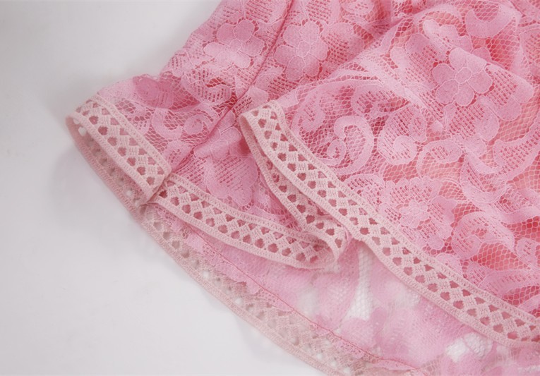 2016 heie Frauen Sommer Sexy Rosa Spitzenkleid Hohl Haken Blume Langarm Brasilianisches Kleid Plus Gre 2XL Vestido De Renda