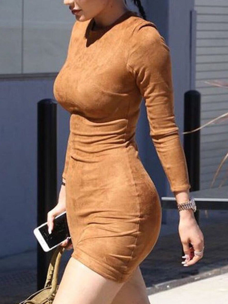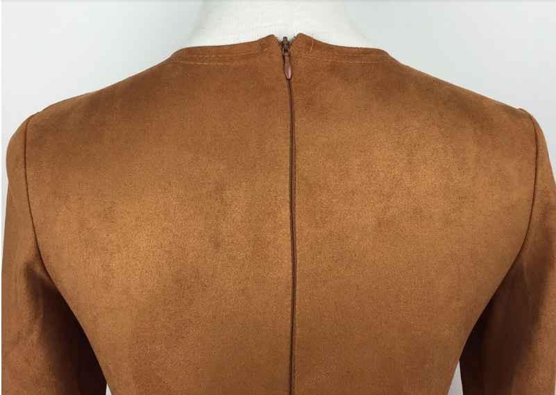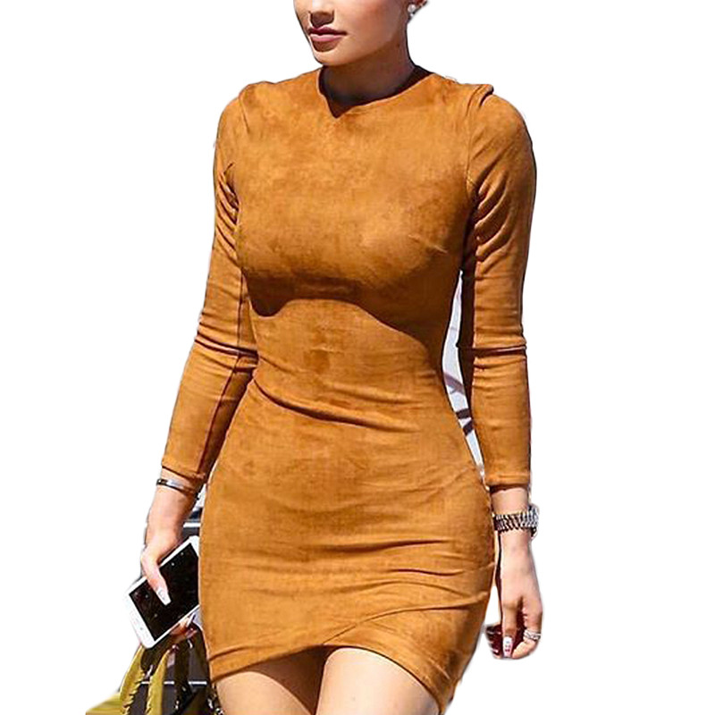 europäischen stil figurbetontes Kleid 2016 herbst langarm wildleder enge casual mini kleid farbe khaki vestidos femininos