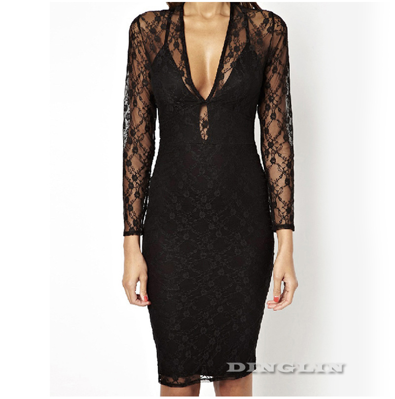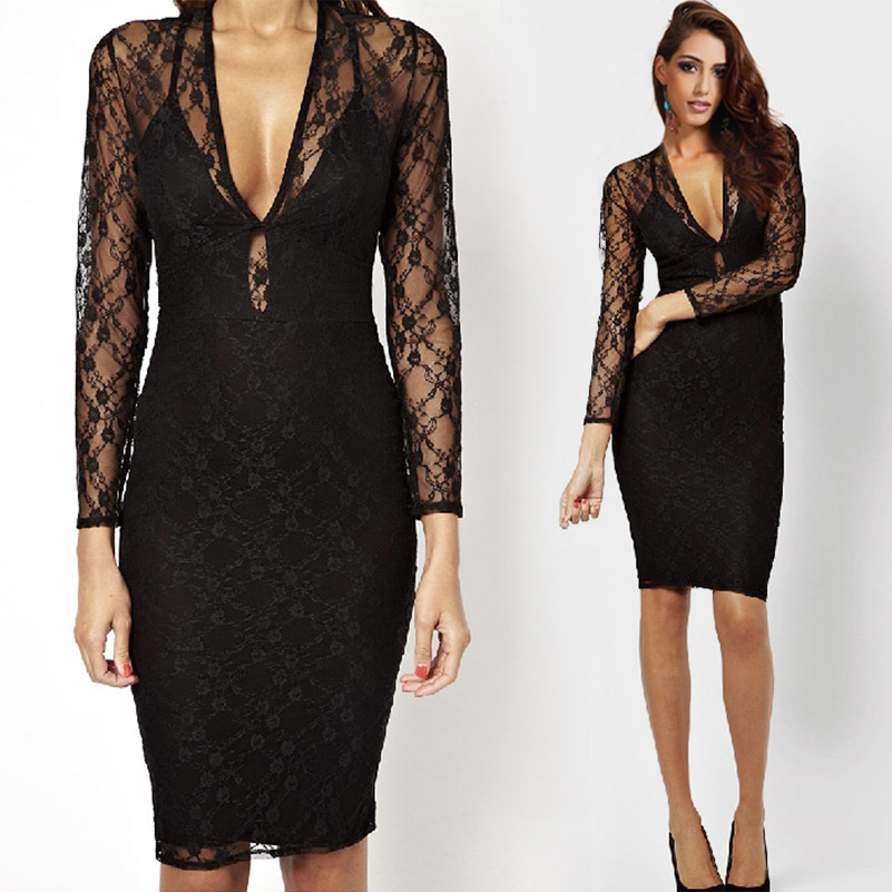 2016 neue Ankunft Heier Verkauf Frauen Sexy Bodycon Spitze Vestido Print V-ausschnitt Clubwear Cocktail Partry Schwarz Kleid CL2493