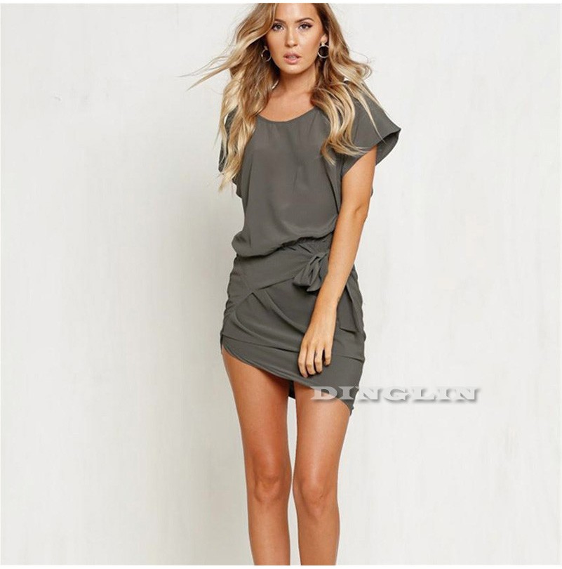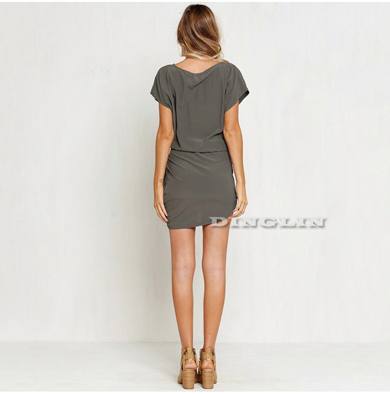 2016 neue Ankunft Heier Verkauf Mode Lssig Falten Sexy Kleid frauen Sommer Einfarbig Kurzarm Rundhals Kleid CL2824