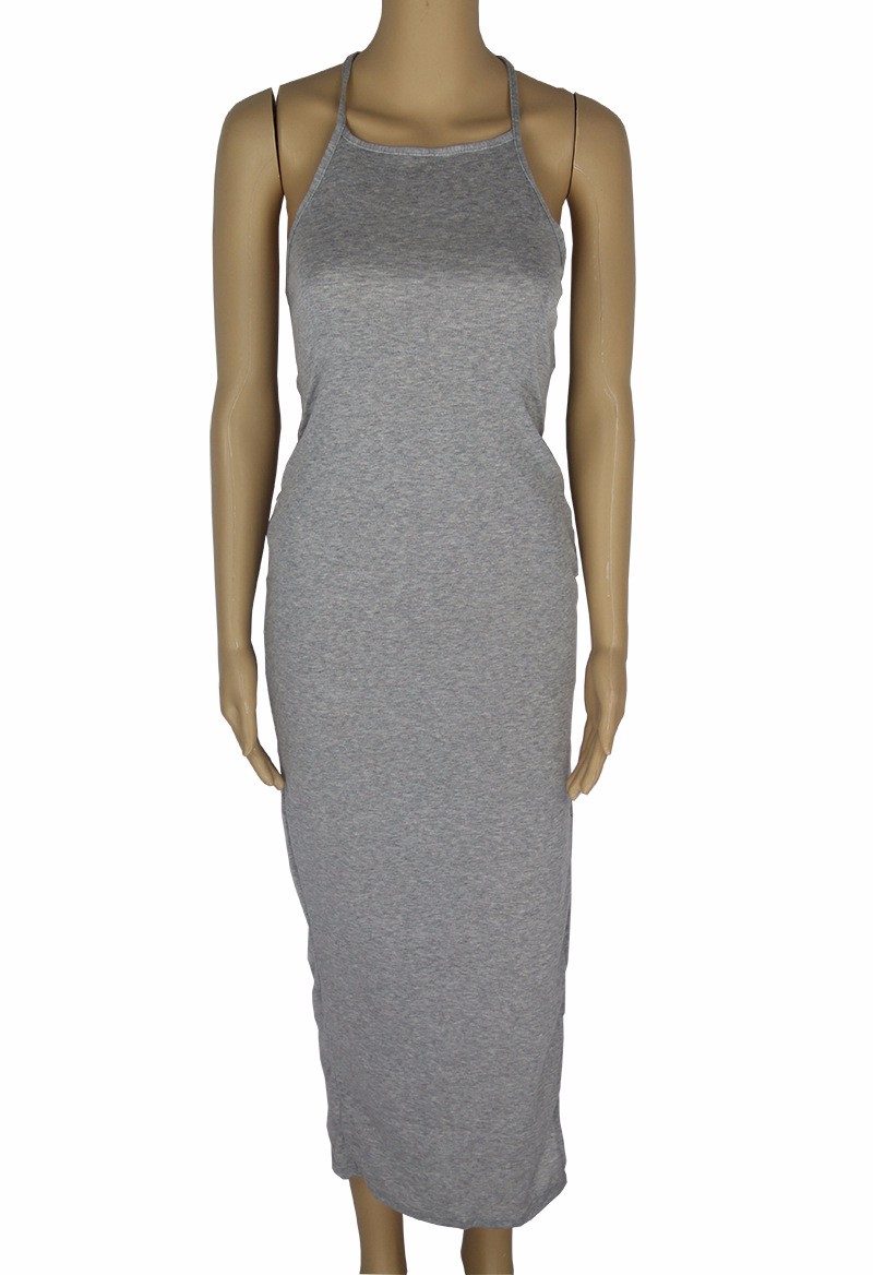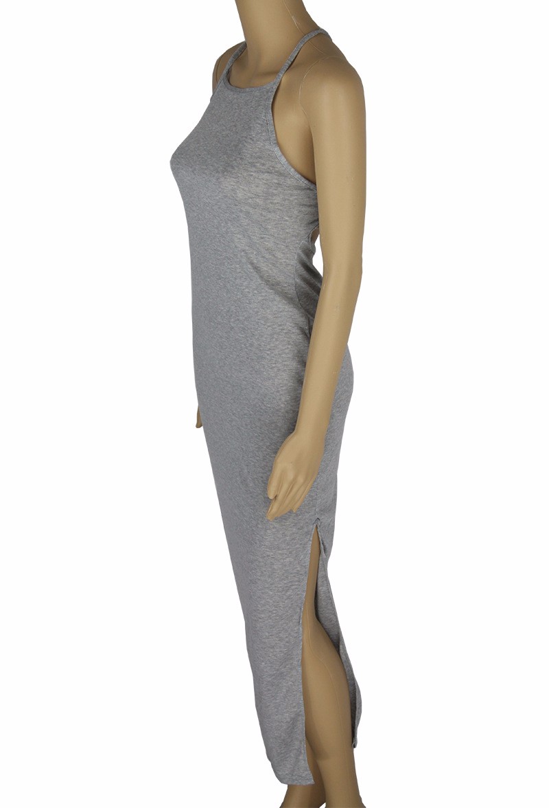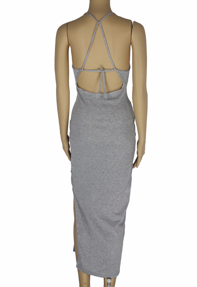 2016 neue Heie Reizvolle Backless Verbandkleid frauen Side Split Strand Kleid Solide Grau Casual Langes Kleid