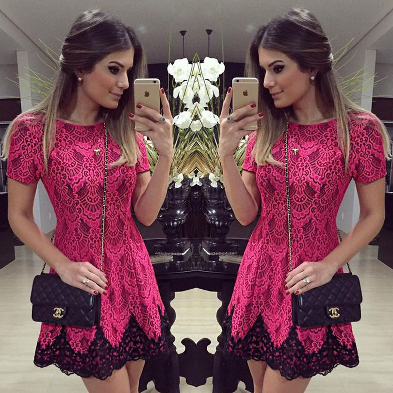 2016 neue Sommer Sexy Arbeit Frauen Spitze Kleid Rot Schwarz Nhen Kurzarm Party Kleid Short Mini Kleid Plus Gre Vestido Festa