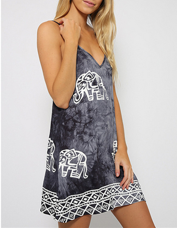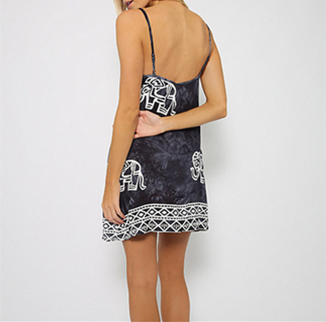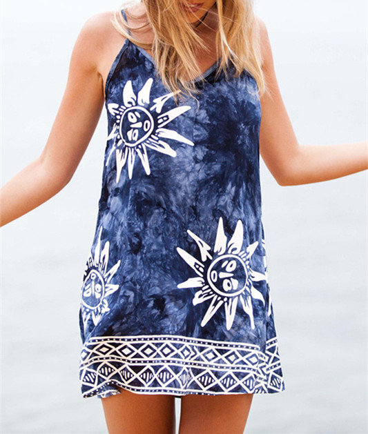 2016 sommer Frauen Kleider Art Und Weisedruck Halfter Kleid Frauen Beilufige Lose Sexy Schlinge Strandkleid