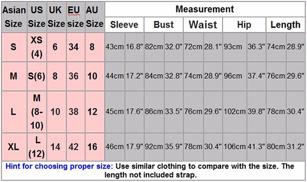 asiatische Größe | UNS Größe | UK Größe | EU Größe | AU Größe | hülse | fehlschlag | taille | hüfte | länge | |||||