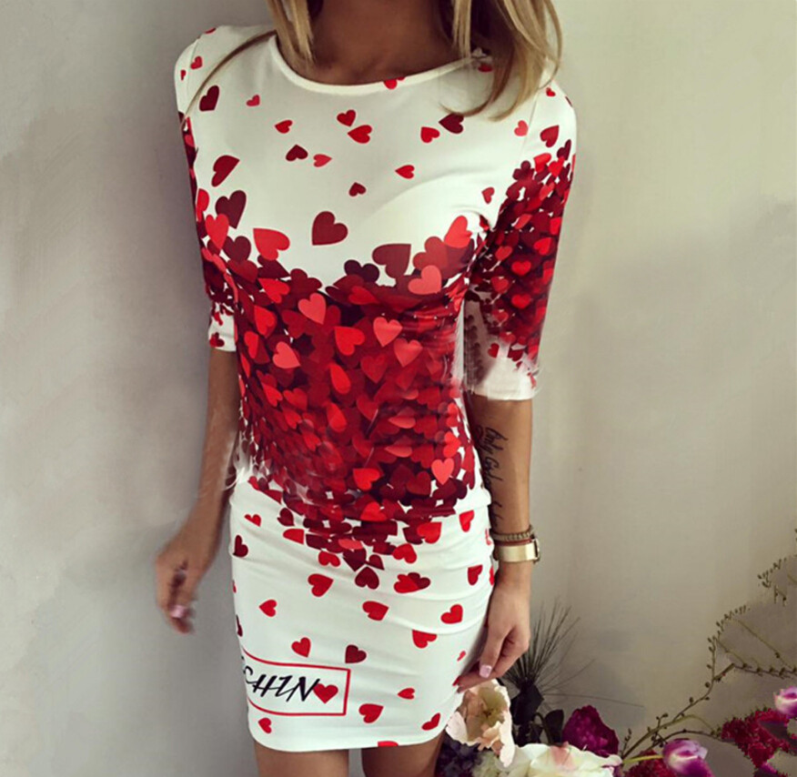 2016 sommer Kleider Frauen Sexy Party Club Bodycon Mantel Beilufige Elegante Kleid Vintage Print Rotes Herz Schne Kleider
