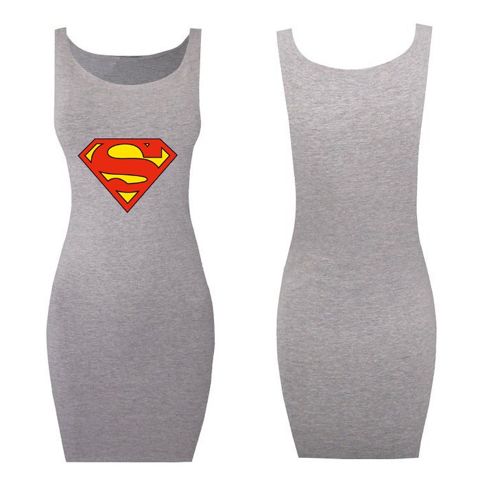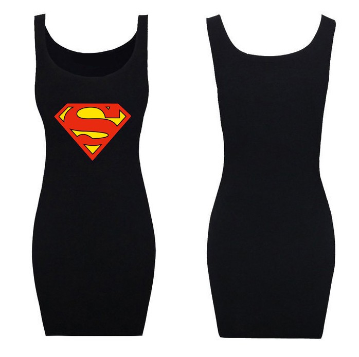 2016 sommer Sexy Frauen superwomen drucken Sleeveless Beilufige Minikleid