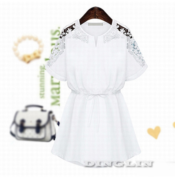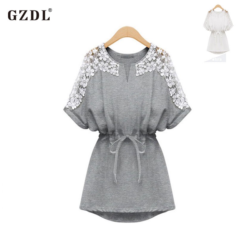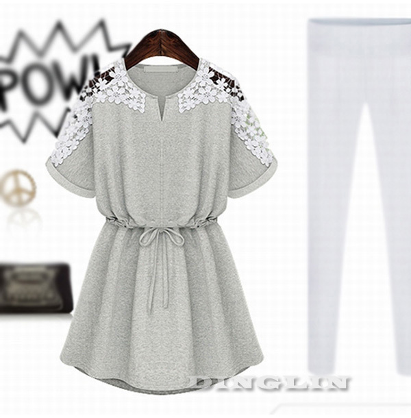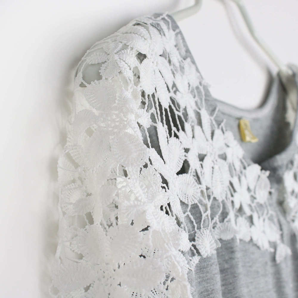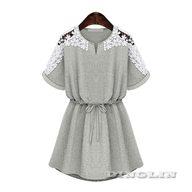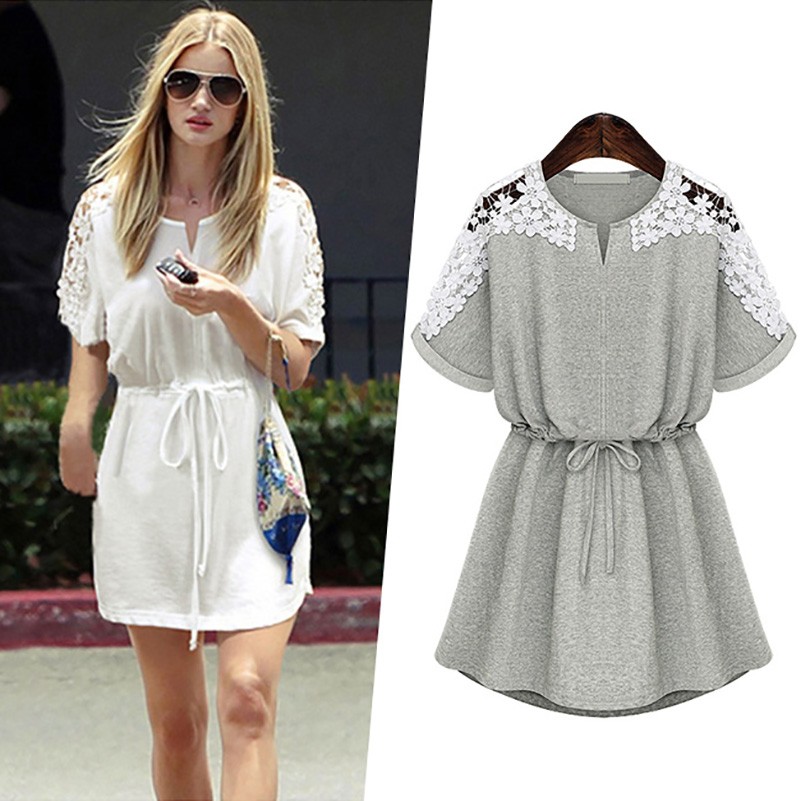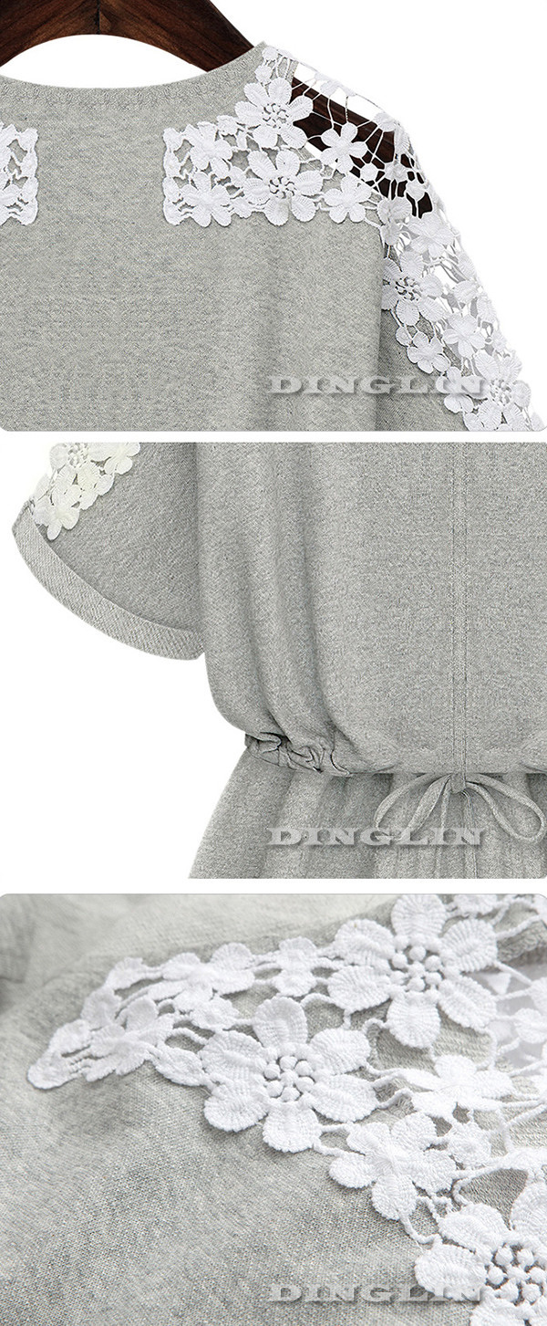 2016 Sommerkleid Frauen Kurzarm Applique Tunika Casual Partei Umschalttaste spitze Kleider Kleid Vestido Weiblichen Wei Grau Sml 1501