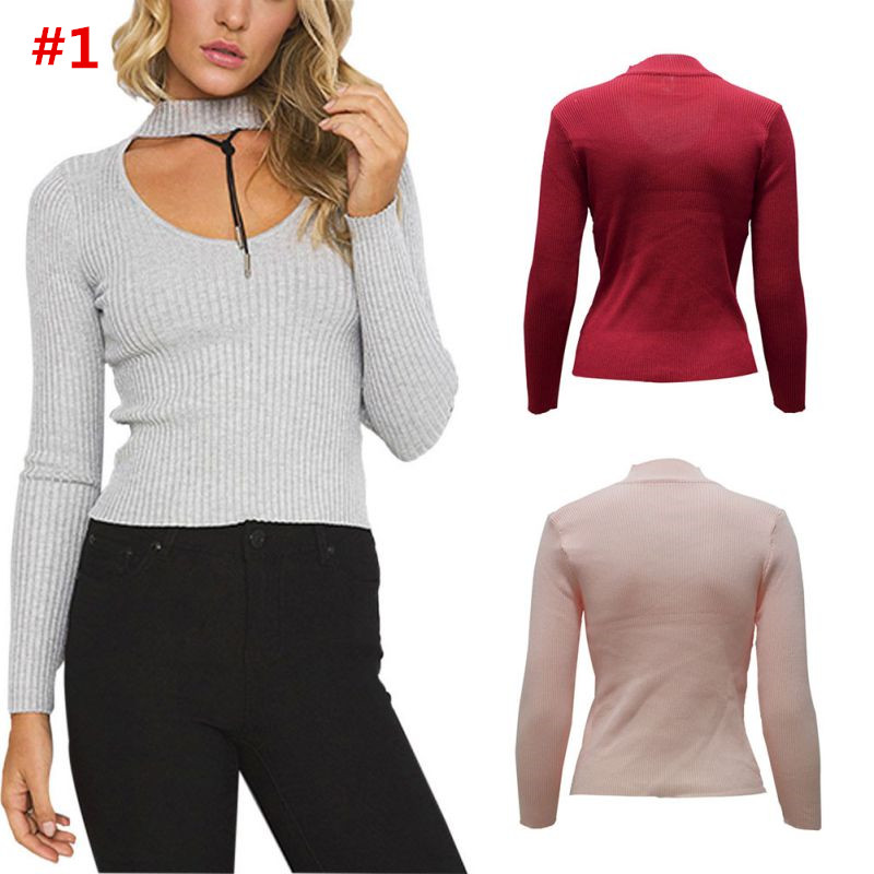 Eleganter halter gestrickten Pullover Kurze Pullover Langarm Schulterfrei Ansatz Reizvolle Verein Frauen Kleid Dnne Gestrickte Pullover Kleidung