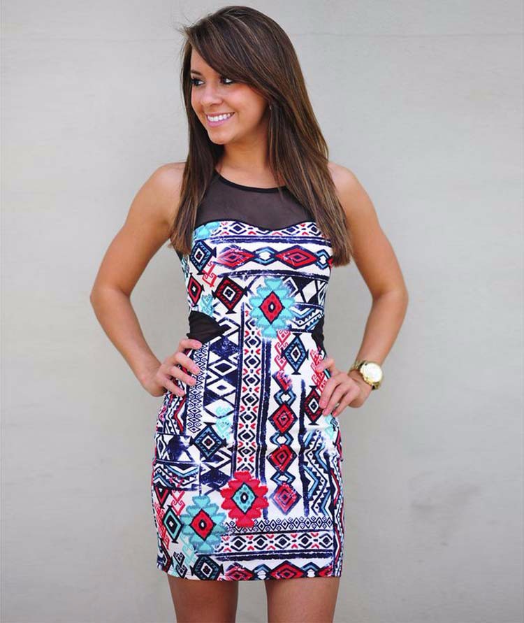 Fashion Neck Spitze Nhen Gedruckt Dnnes Kleid 2016 frauen Bodycon Hip Paket Minikleid Sexy Sommer Weste Kleid Vestidos