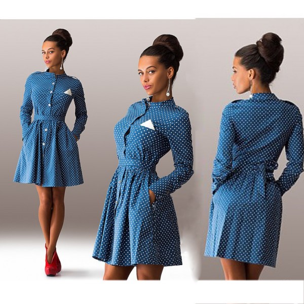 Frauen Heie Weibliche Dot Dekoration Langarm Dnne Modelle Schlank Sexy Minikleid casual style Drei farben t-shirt kleid 1203A