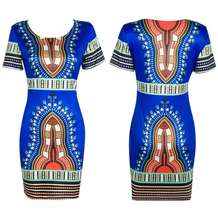 frauen kleider Polyester Spandex mädchen sommer Traditionelle Afrikanische Druck Dashiki Bodycon Sexy Kurzarm Kleid vintage vestidos