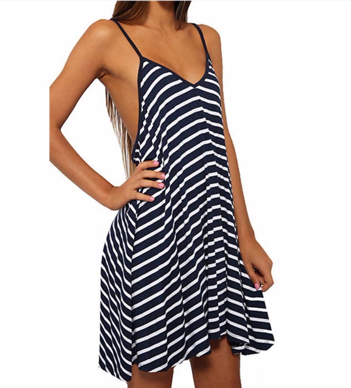 Frauen Sexy gestreifte spitze sommerkleid Bgel tiefe v-ausschnitt hohe taille strand kleider frauen