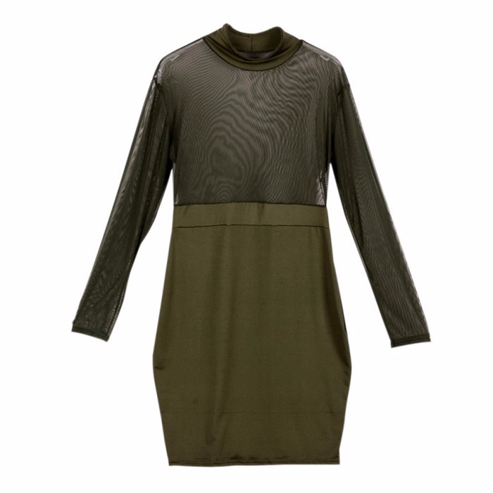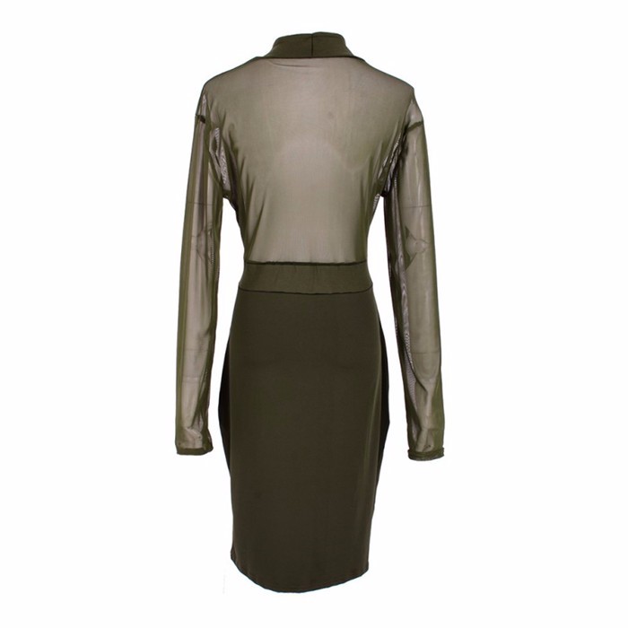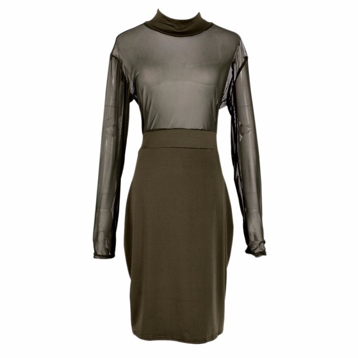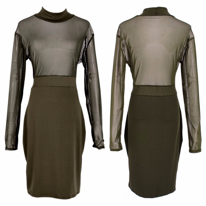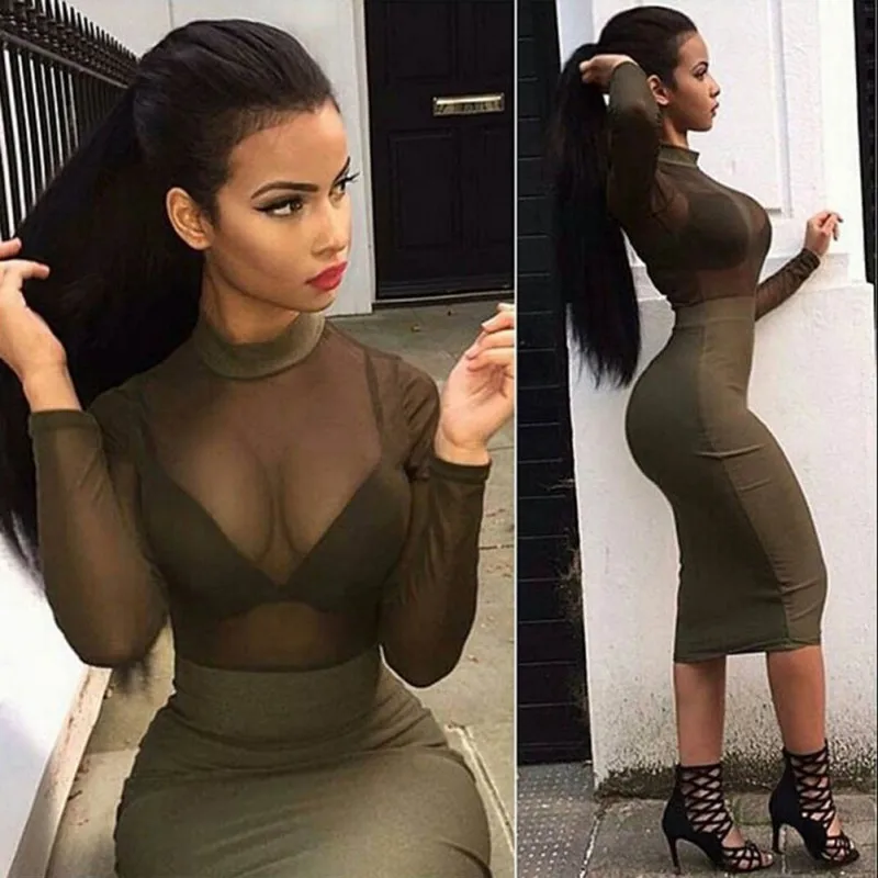 Frauen Sexy Nettogarn Pakethftekleid Damen Langarm-dnne Bleistift Kleid S-XL