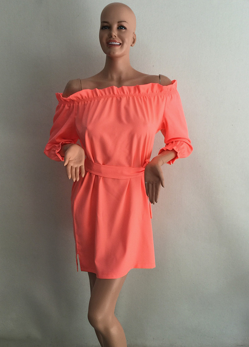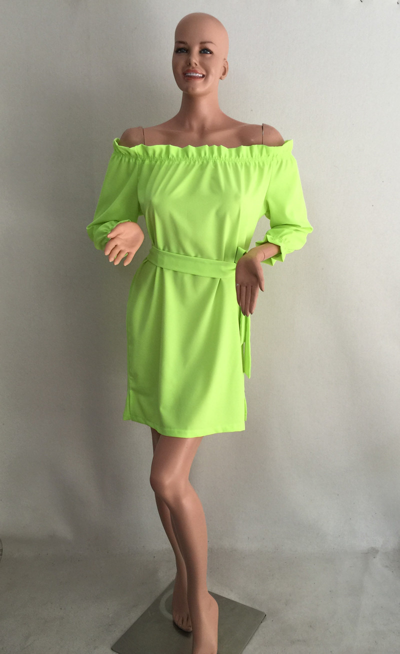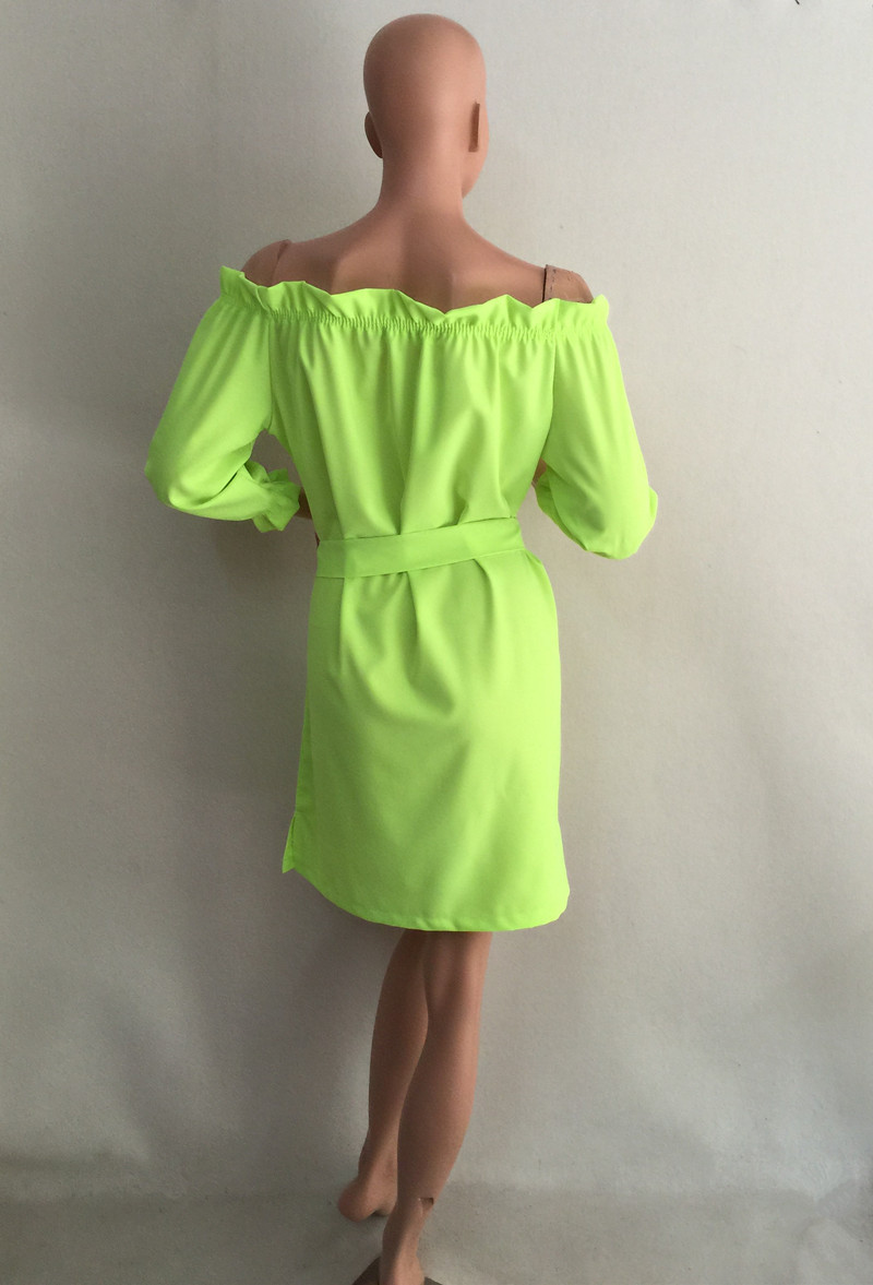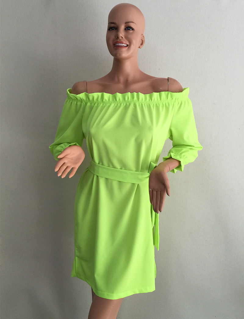 Frauen sommer Fluoreszenz Grn Kleider 2016 Sexy Rschen-boot-ausschnitt Bogen Grtel Pin Up Hauchhlse Kleid