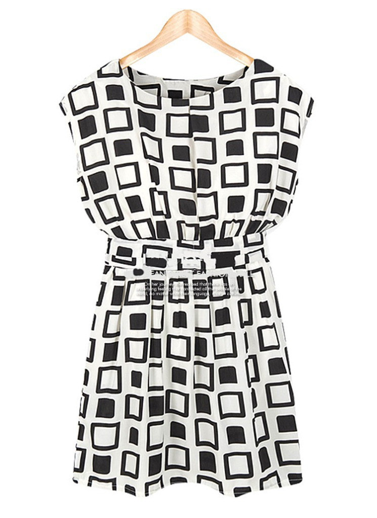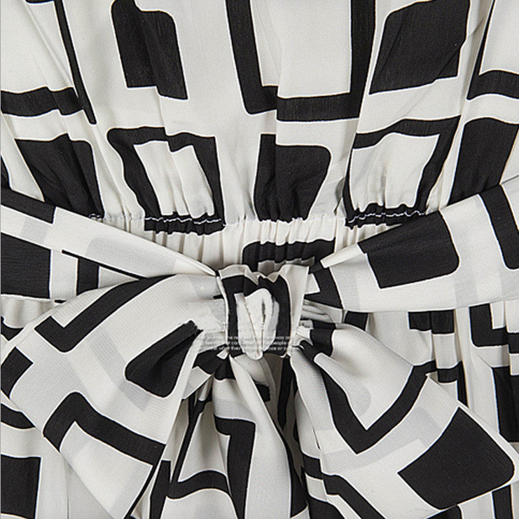 frauen Sommerkleid Adrette Black White Geometric Print Chiffon Tunika Casual Mini Frauen Sexy Kleider Party Nachtclub-kleid