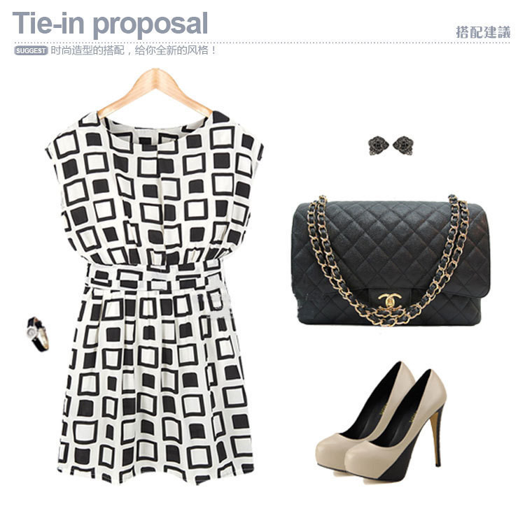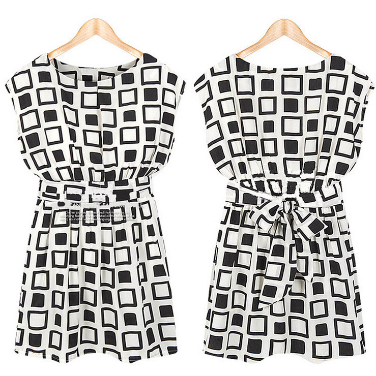 Frauen Sommerkleid Adrette Black White Geometric Print Chiffon Tunika Casual Mini Frauen Sexy Kleider Party Nachtclub-kleid