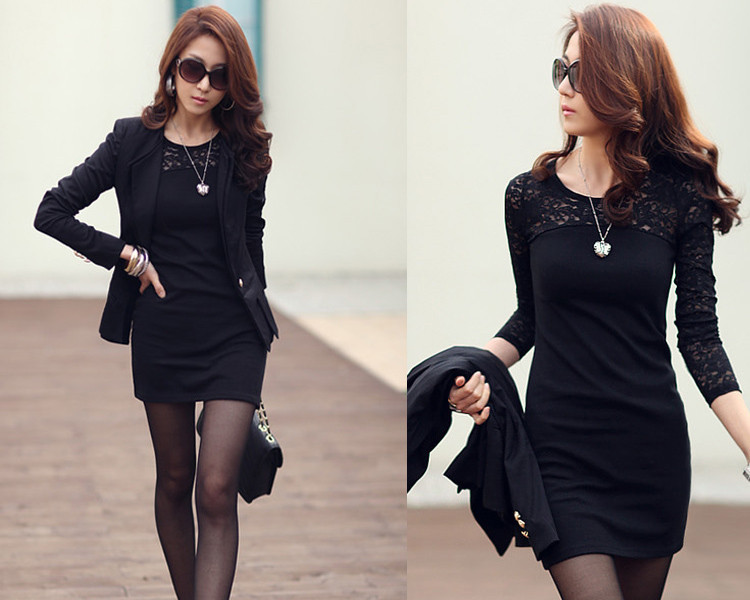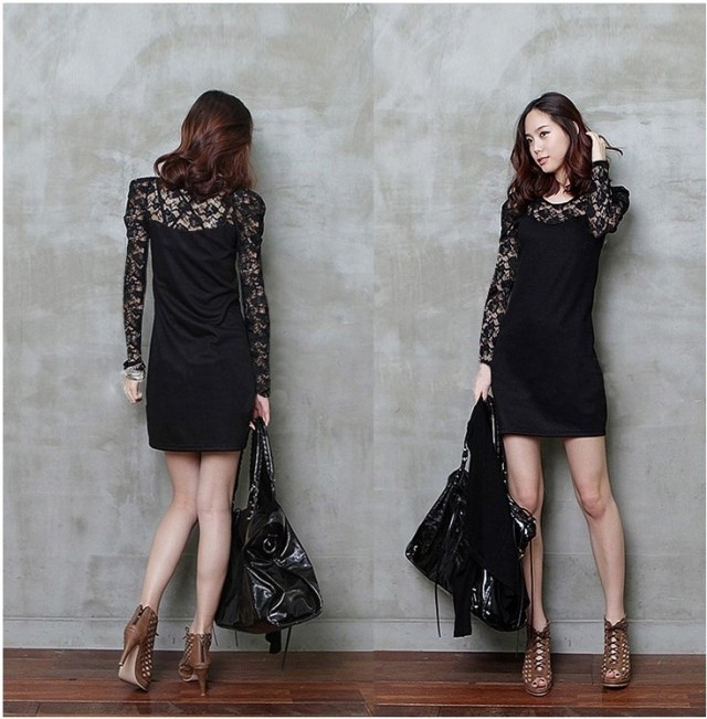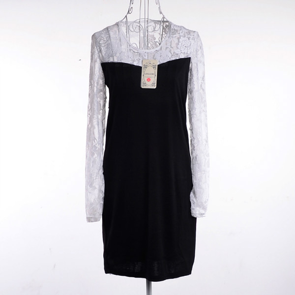 Freies Verschiffen Heier Verkauf 2015 Neue Frauen Kleider Sexy oansatz Langarm Skater Spitzenkleid