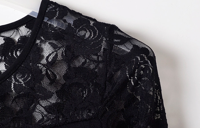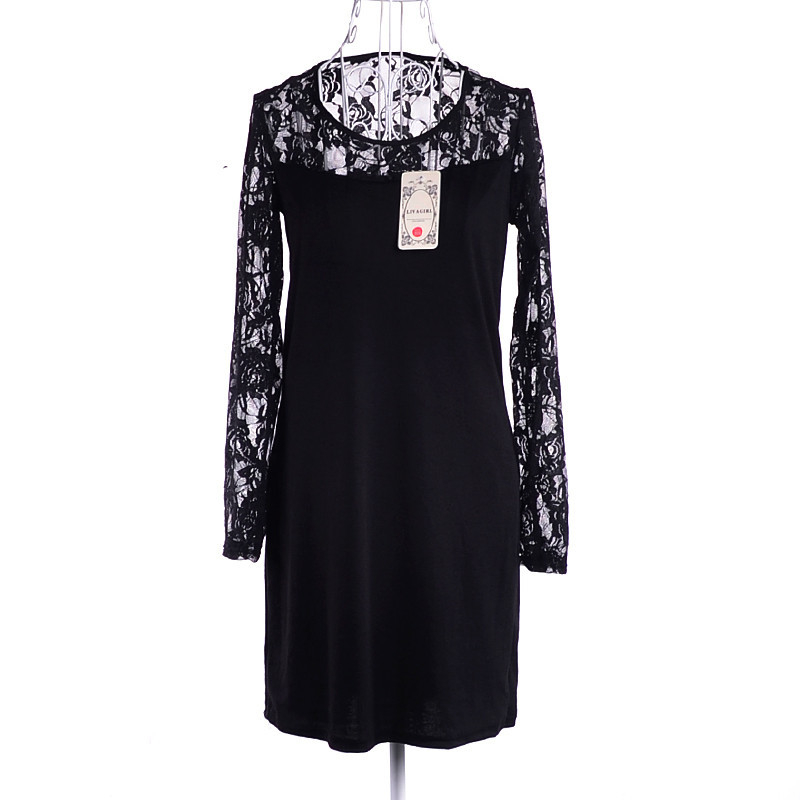 Plus Größe Frauen Kleidung Schwarz Sexy Damen Floral vestidos Spitze Dünnes Kleid Langarm Bodycon Minikleid Tropfen-verschiffen